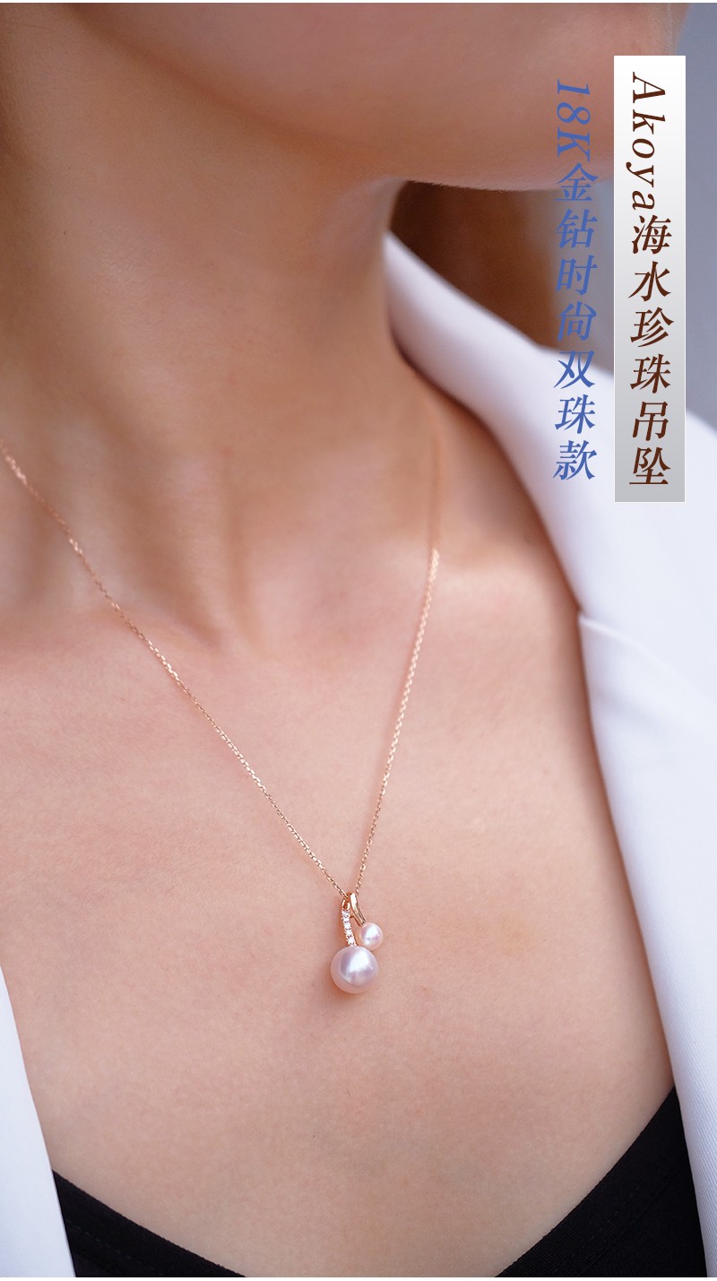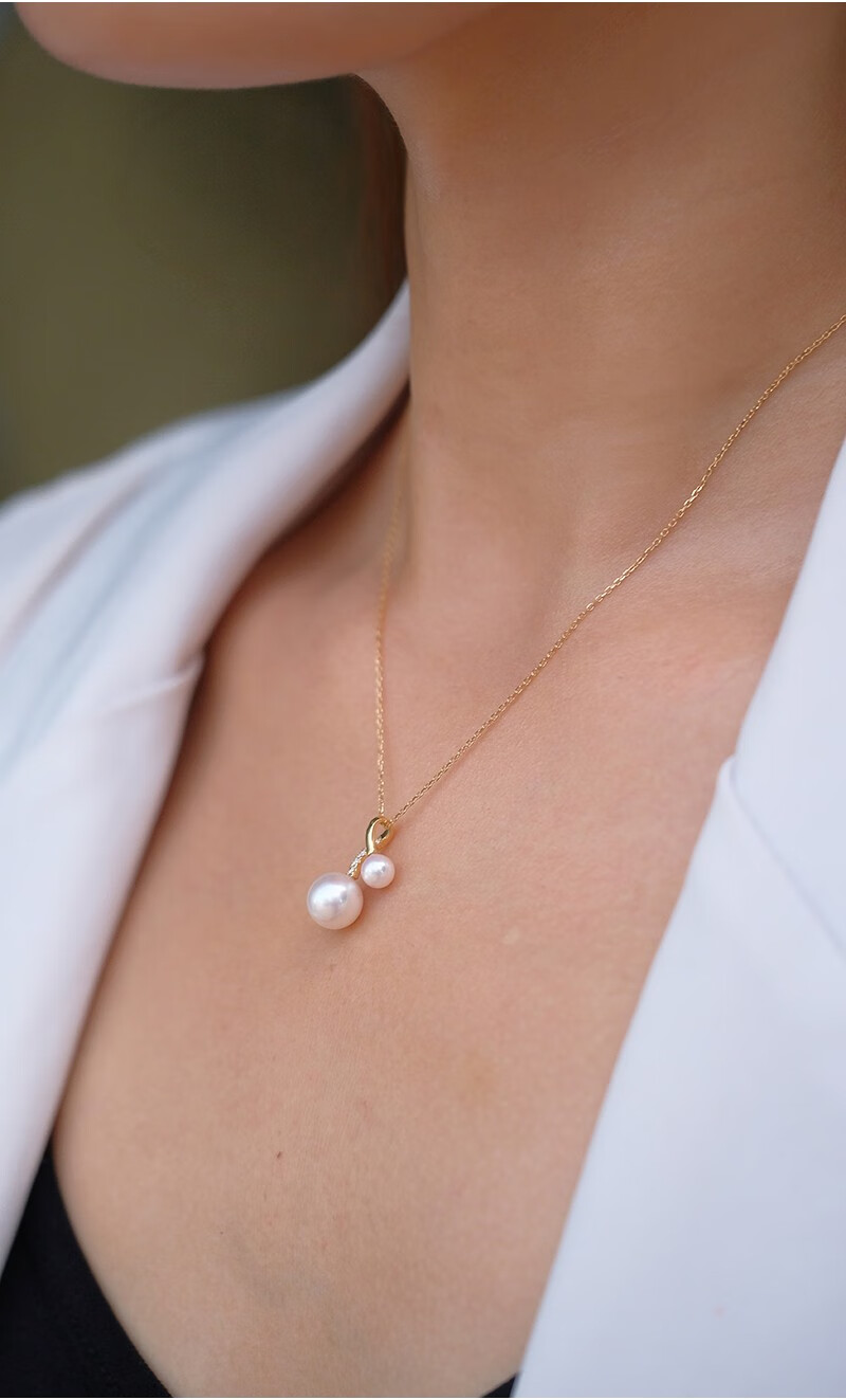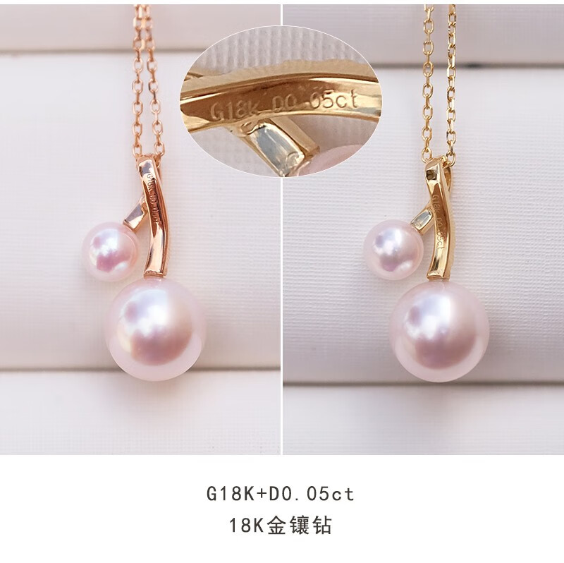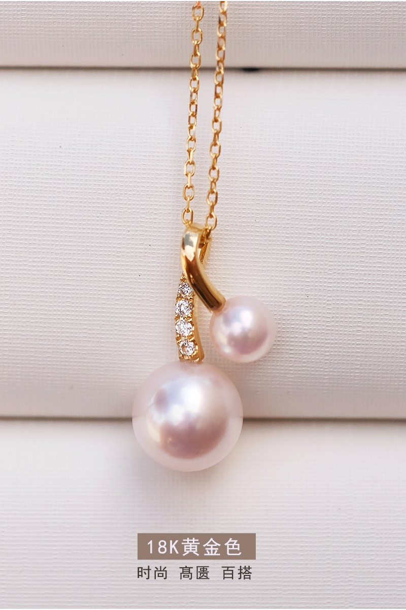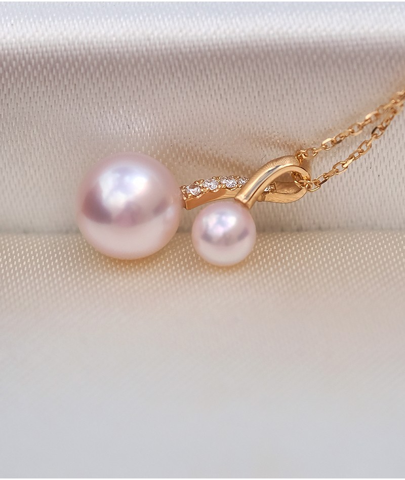 V&C Japan AKOYA pearl double bead pendant 18K gold diamond goddess pink seawater necklace perfect round 18K yellow + diamond (excluding chain) 8.5-9MM (large bead size)