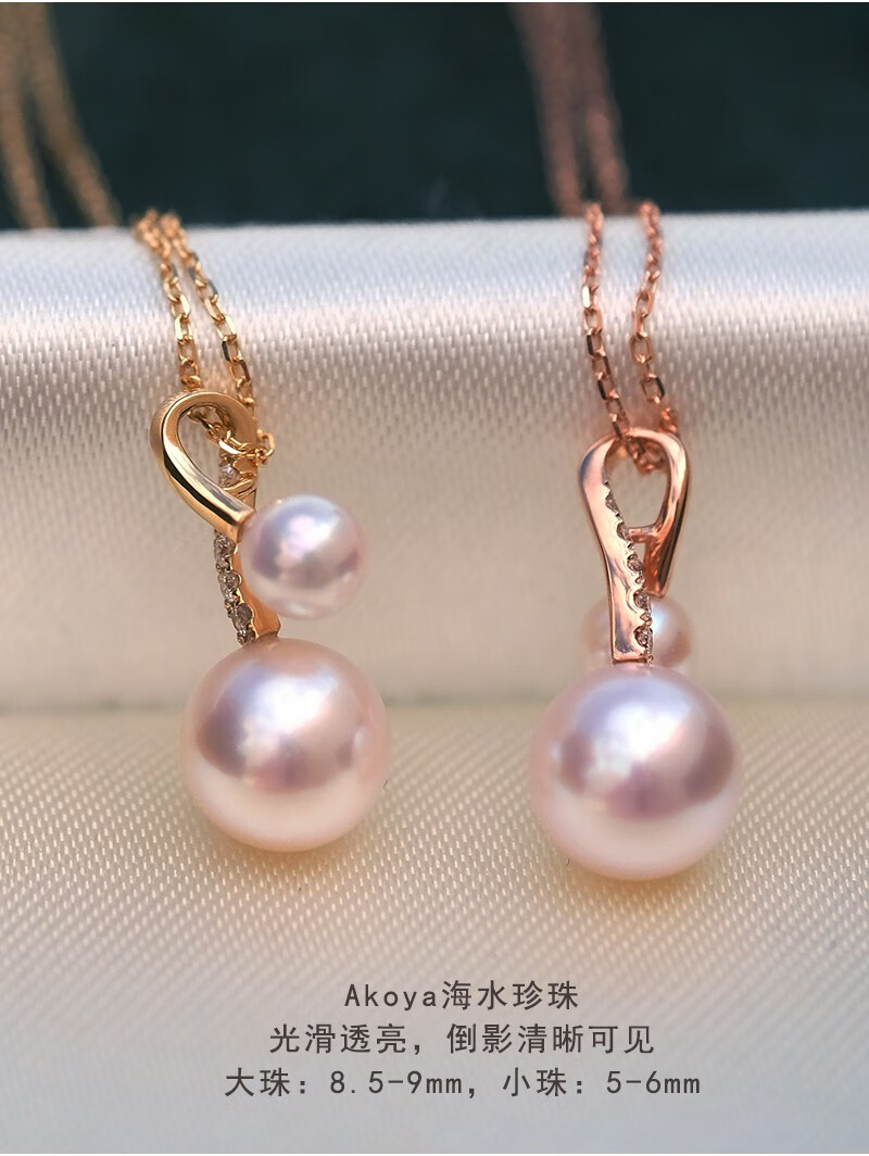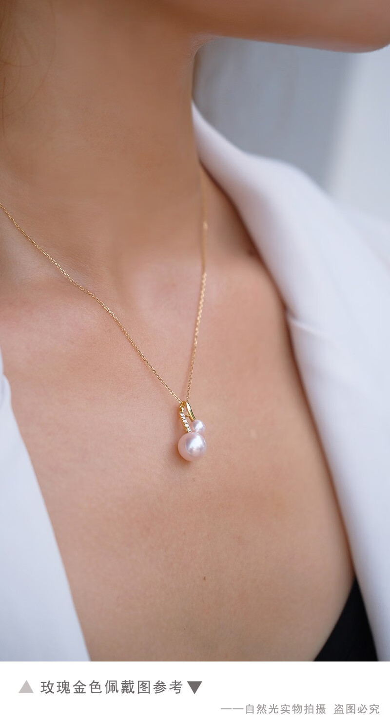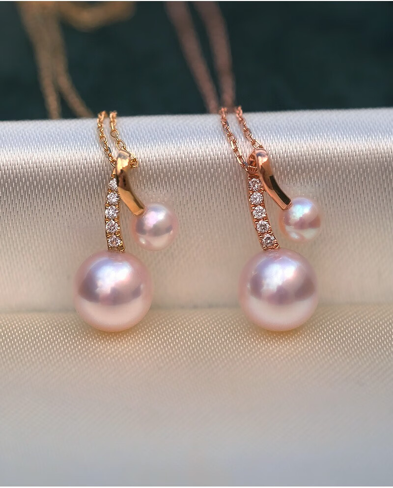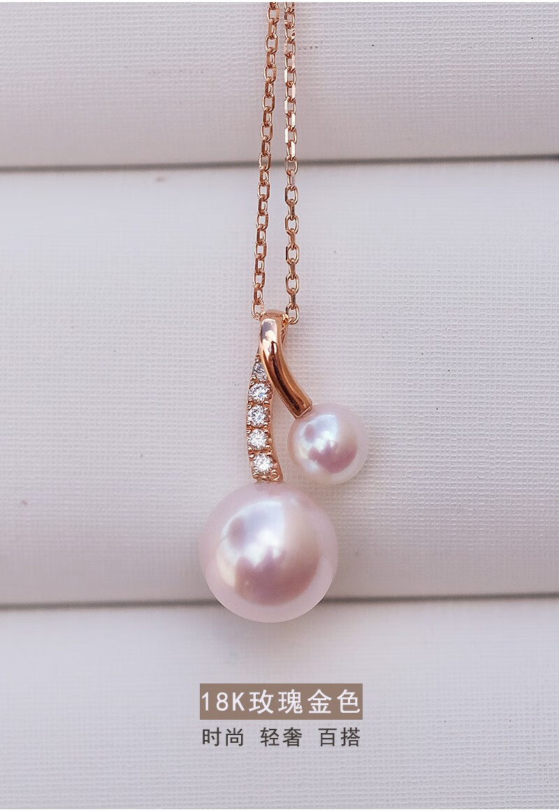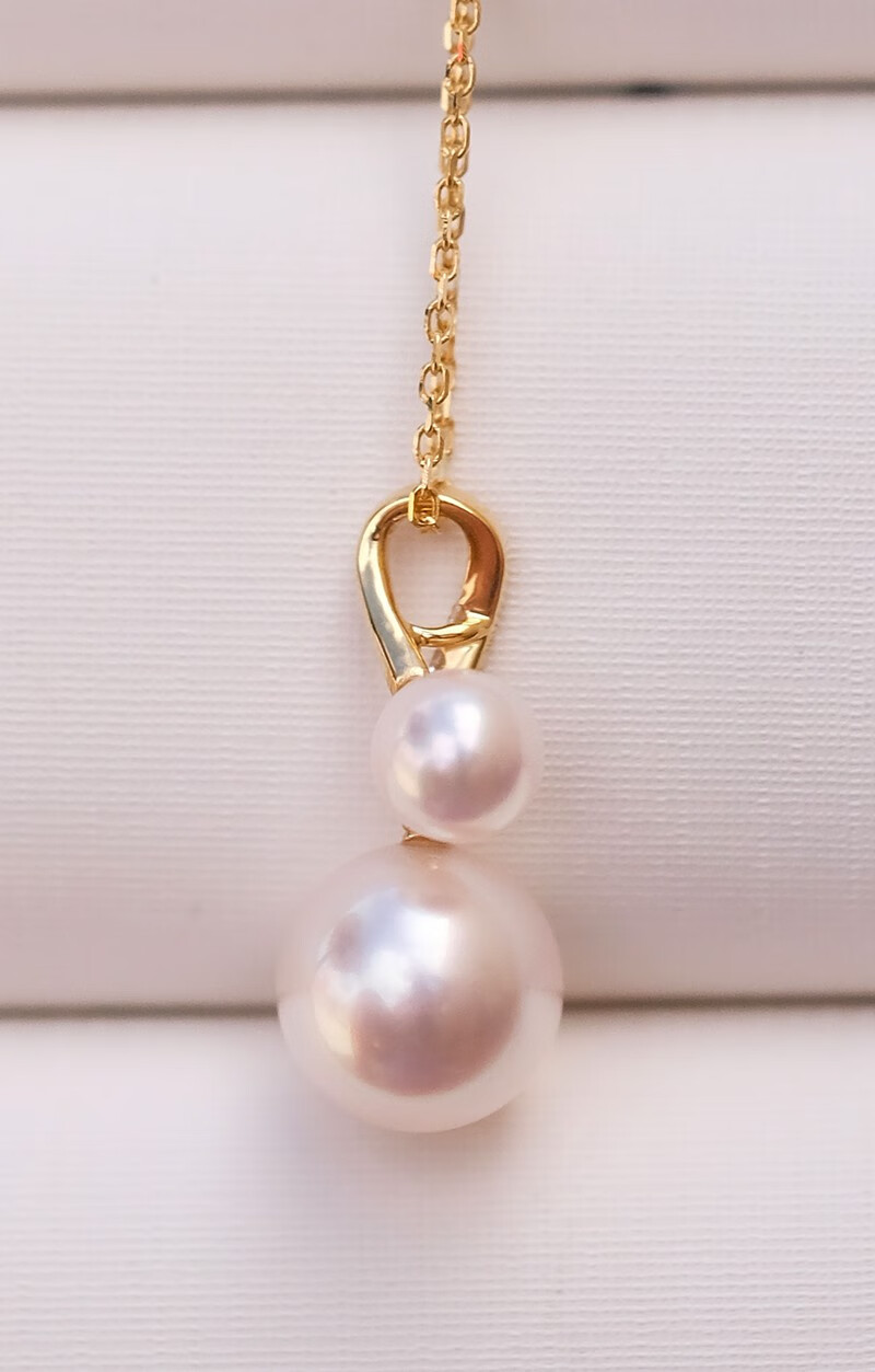 V&C Japan AKOYA pearl double bead pendant 18K gold diamond goddess pink seawater necklace perfect round 18K yellow + diamond (excluding chain) 8.5-9MM (large bead size)