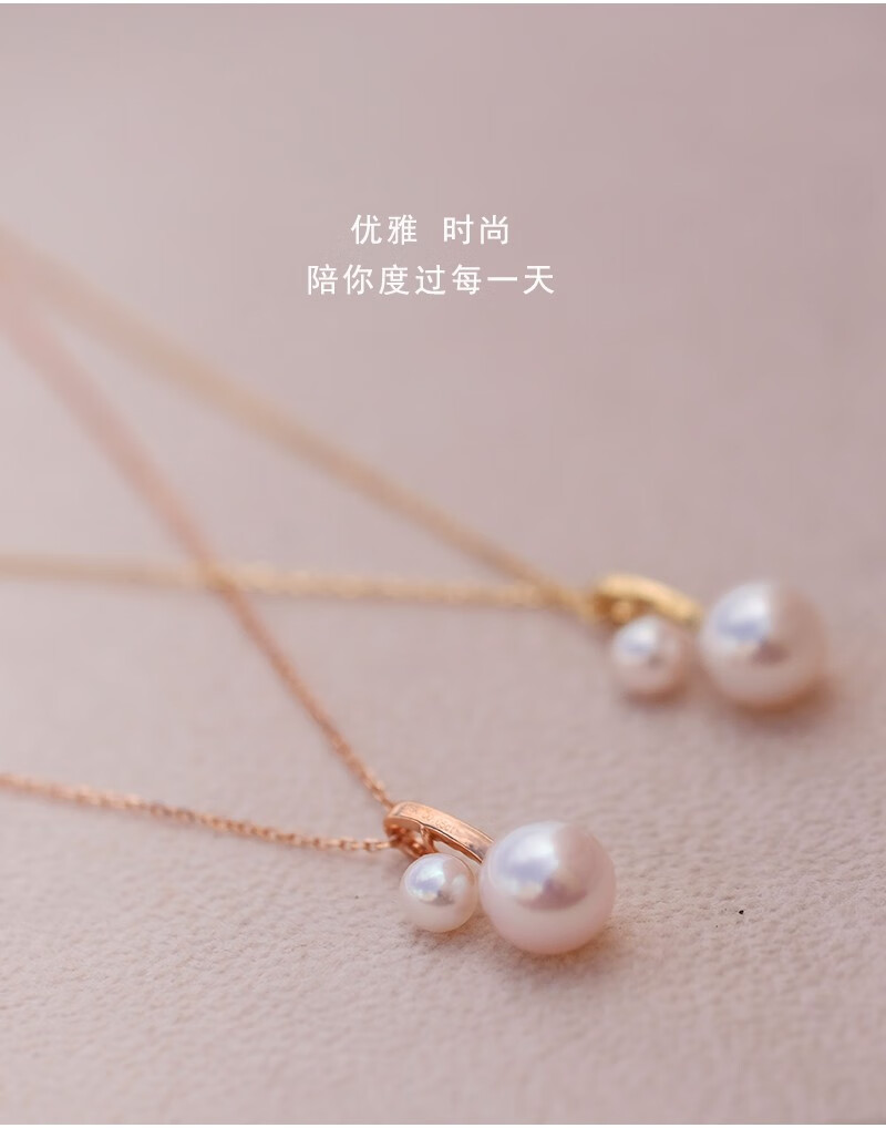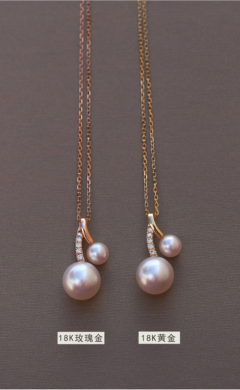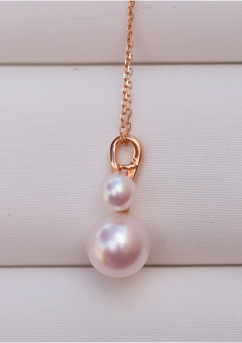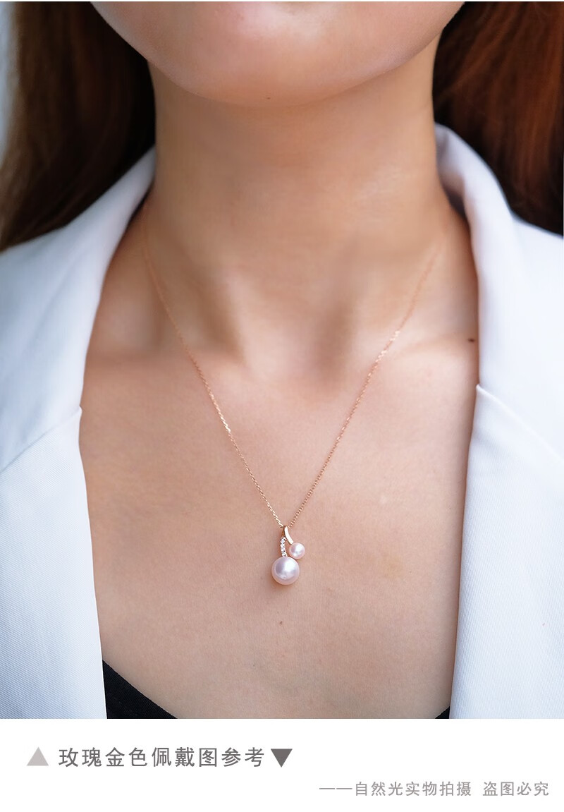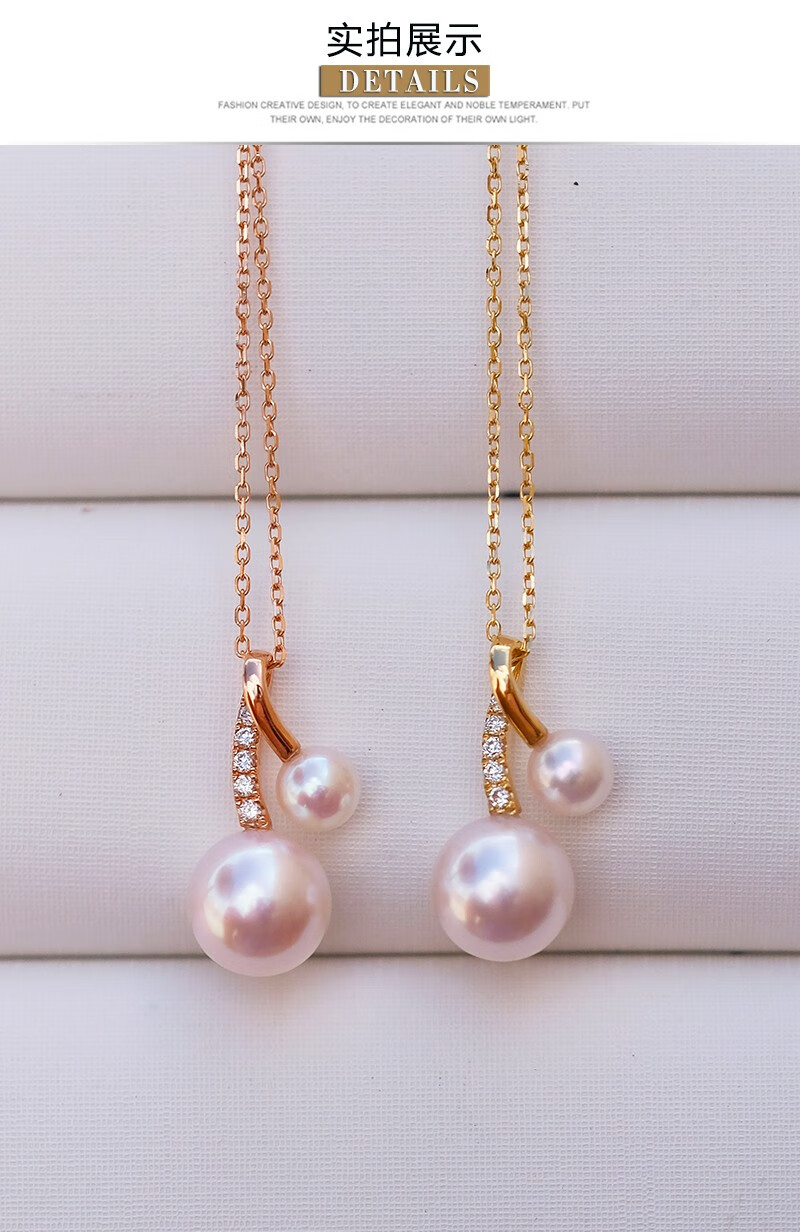 V&C Japan AKOYA pearl double bead pendant 18K gold diamond goddess pink seawater necklace perfect round 18K yellow + diamond (excluding chain) 8.5-9MM (large bead size)