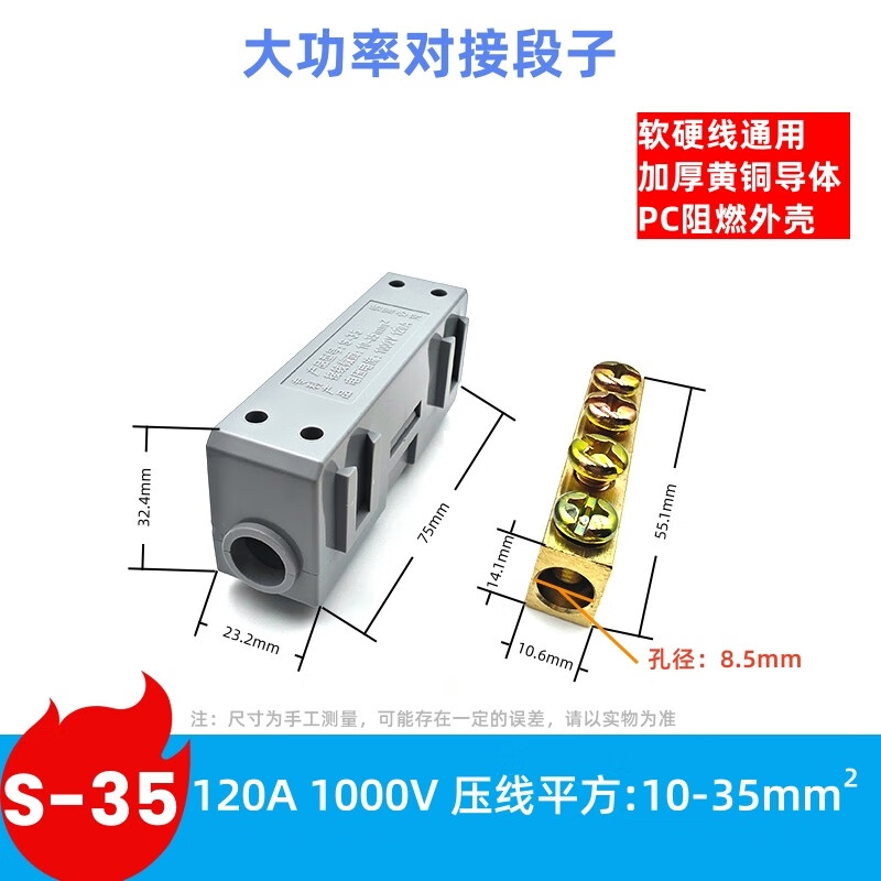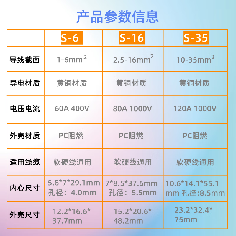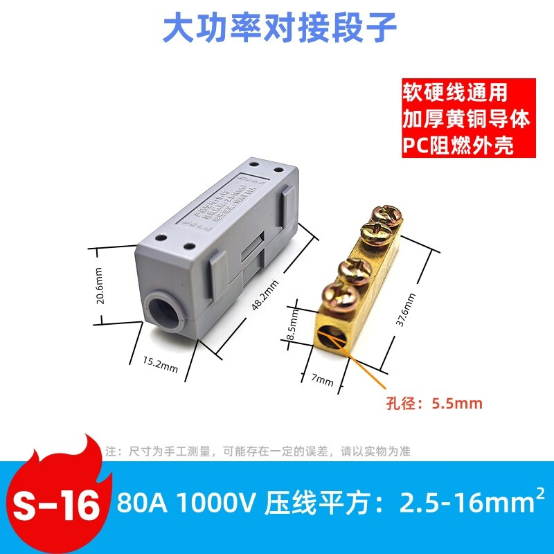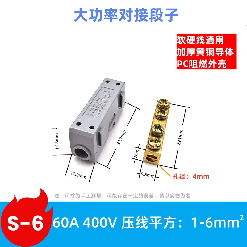 Sennuo Shield Quick Terminal Copper Connector Clamp High Power Butt Connector Wire Connector Screw Fixed Transition S-6 60A/400V Wire Diameter 1-6mm