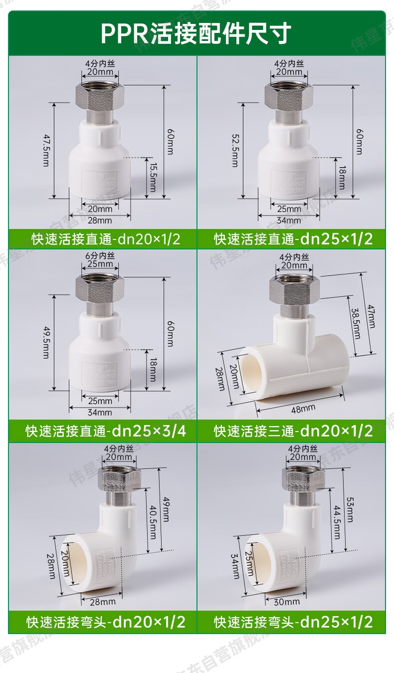 Weixing PPR quick moving elbow 4 points dn20 1/2 quick moving joint hot melt water heater with inner wire water pipe official authentic