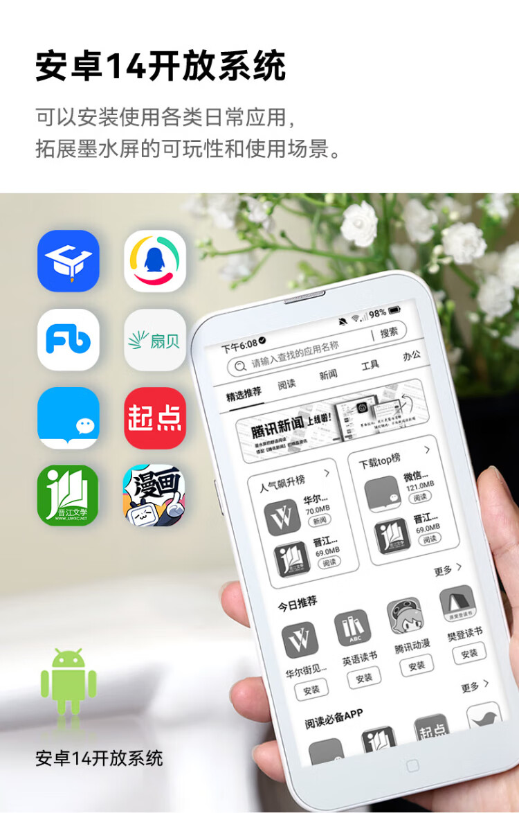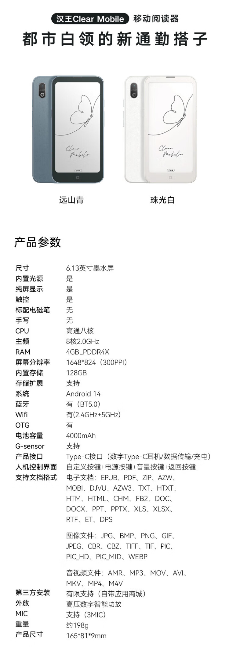 Hanvon Clear Mobile 6.13-inch portable mobile phone reader smart e-paper book e-book ink screen thin and light e-paper tablet Yuanshan Qing