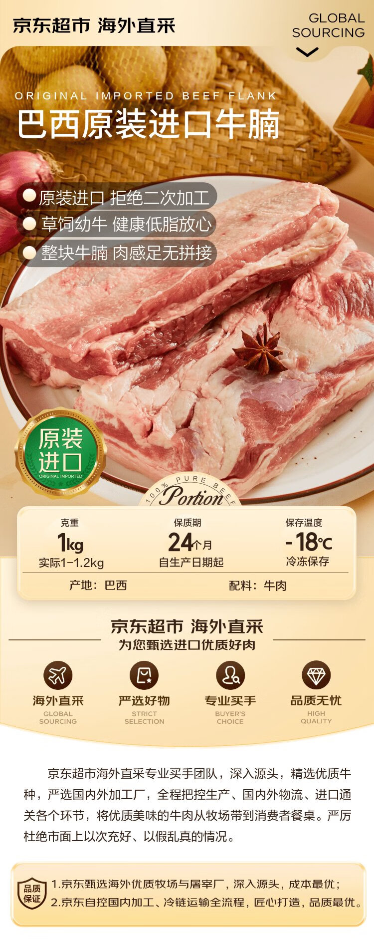 Jingdong Supermarket Overseas Direct Procurement Brazil Original Imported Beef Brisket 1kg Whole Piece 90% Lean Meat Rate Self-operated