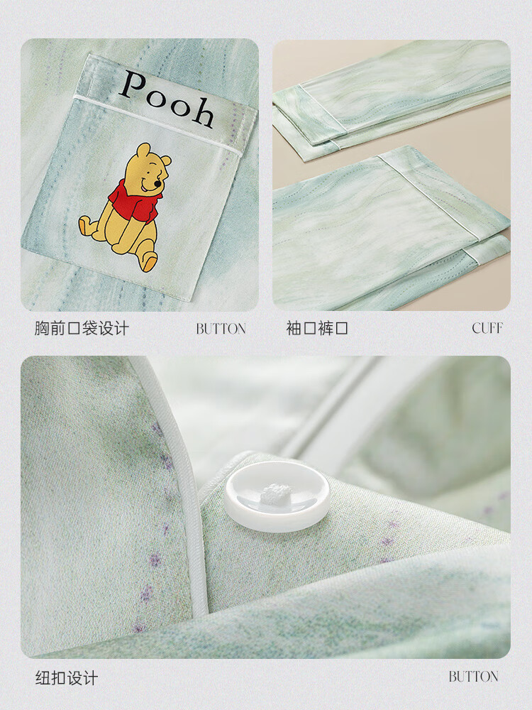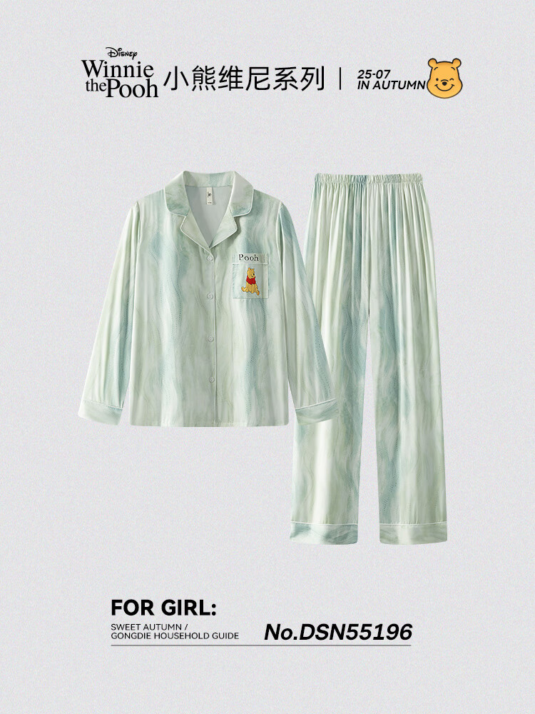 Gong Die Light and Soft Disney Puff Bear Couple Pajamas Women's Spring and Autumn Long Sleeve Ice and Snow Silk Men's Home Clothes