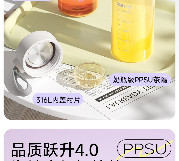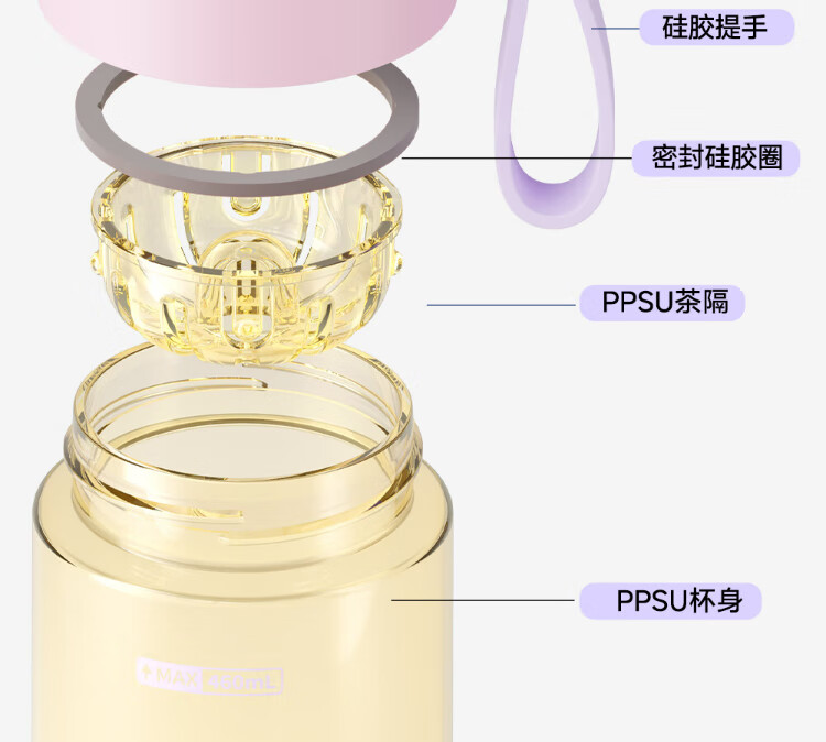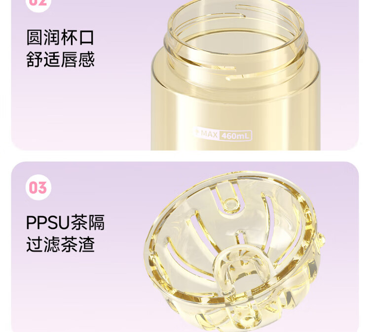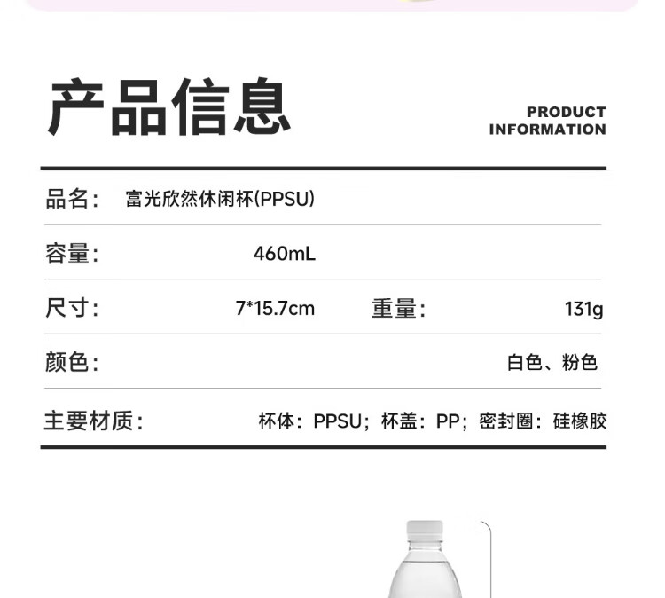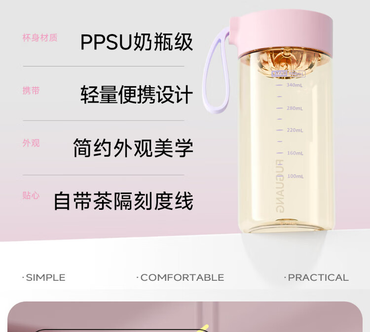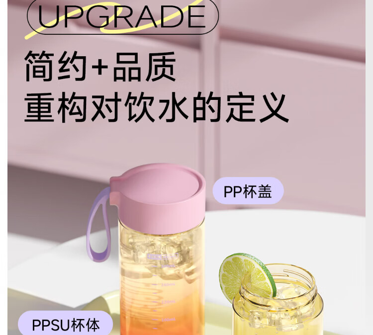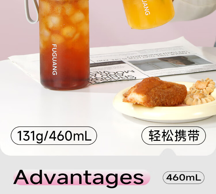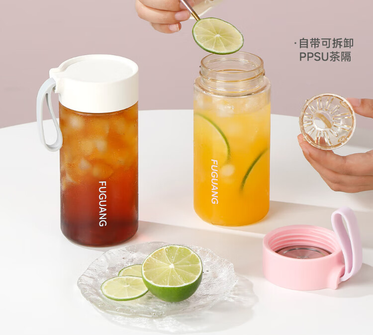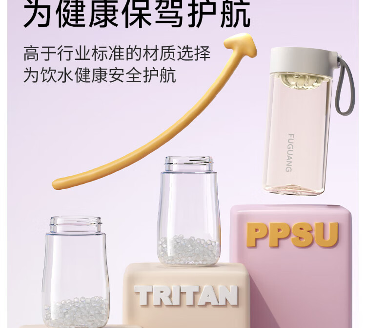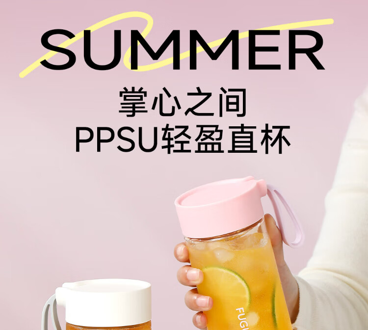 Fuguang plastic cup ppsu portable student girl summer high-looking high-temperature resistant sports water cup tea cup white 460ML
