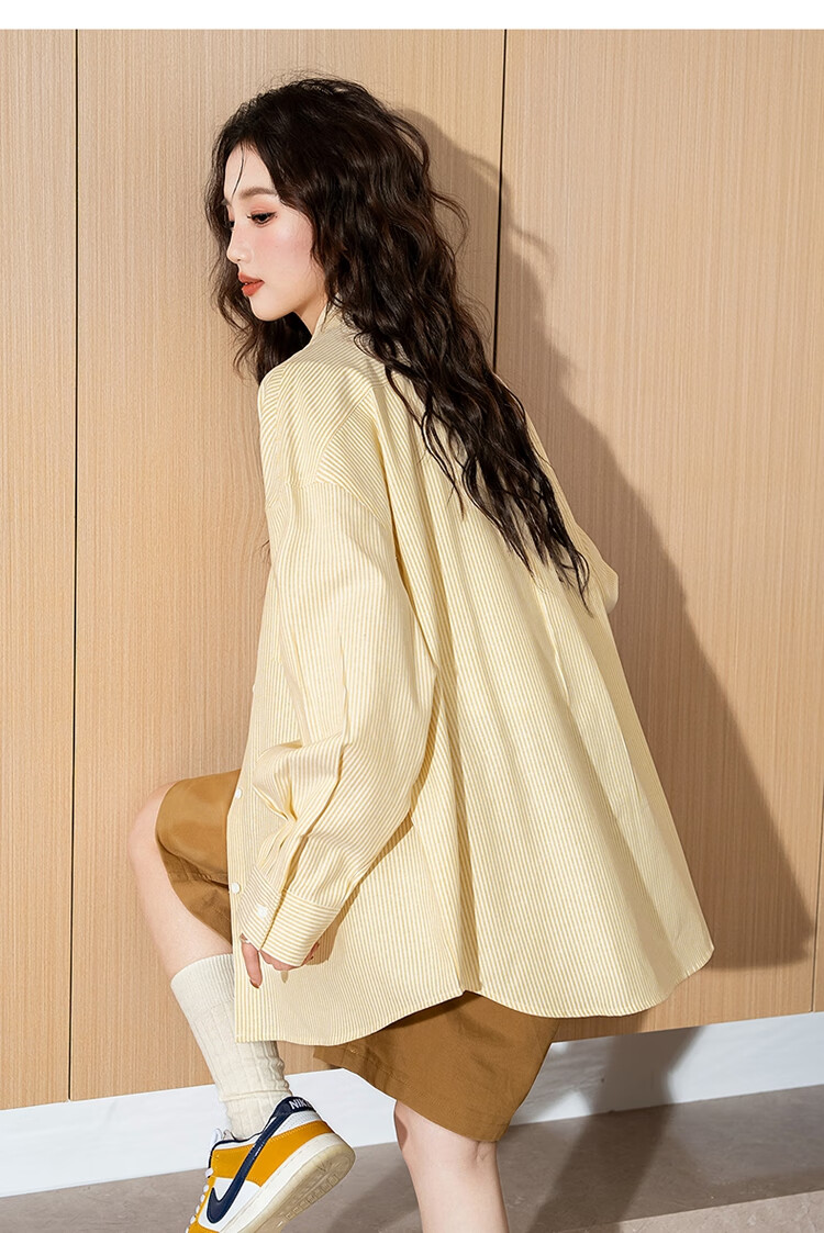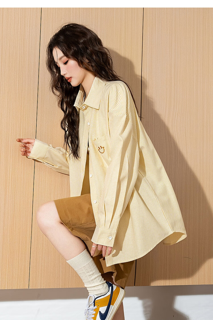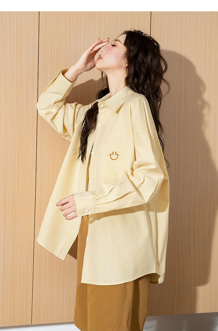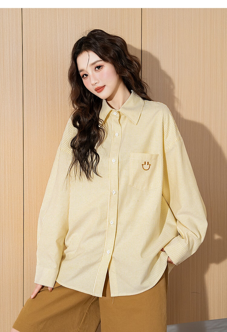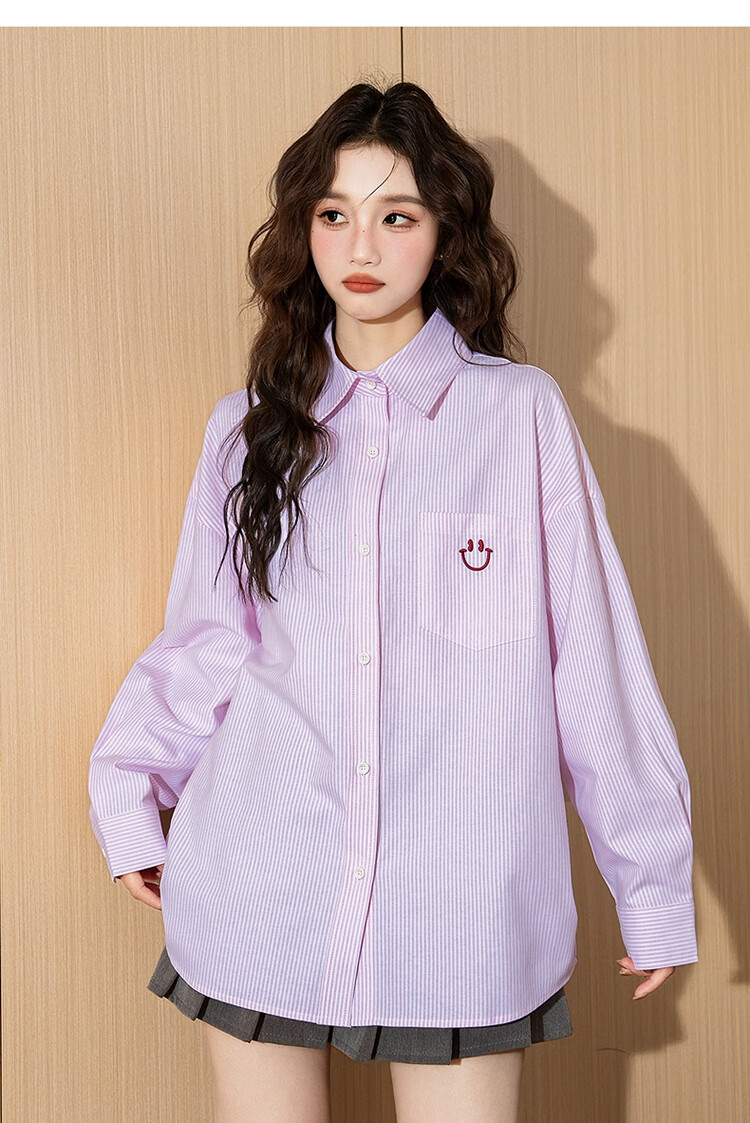 TonLion 2025 Women's Long Sleeve Shirt Casual Striped Lapel Women's Shirt Versatile and Trendy Gummy Pink L