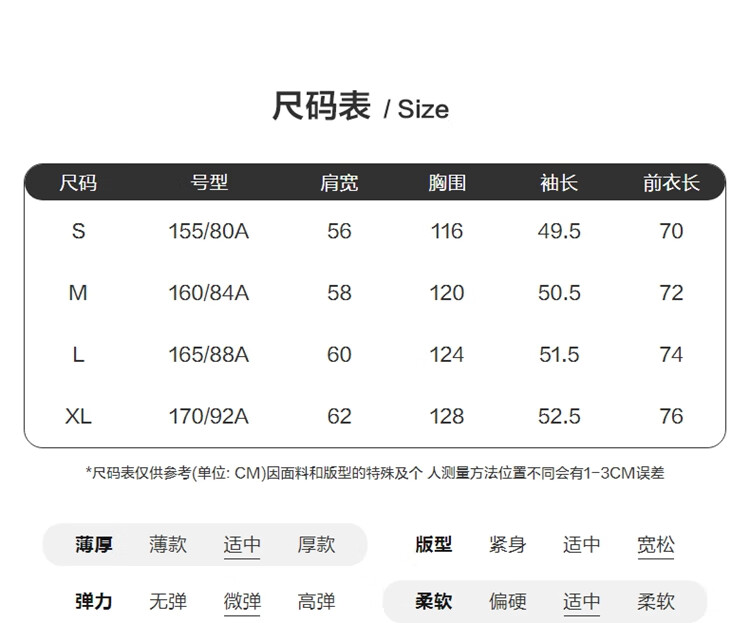 China (cm) 160-165/84-86 165-170 / 88-90 167-172 / 92-96 168-173 / 98-102 170-176 / 106-110