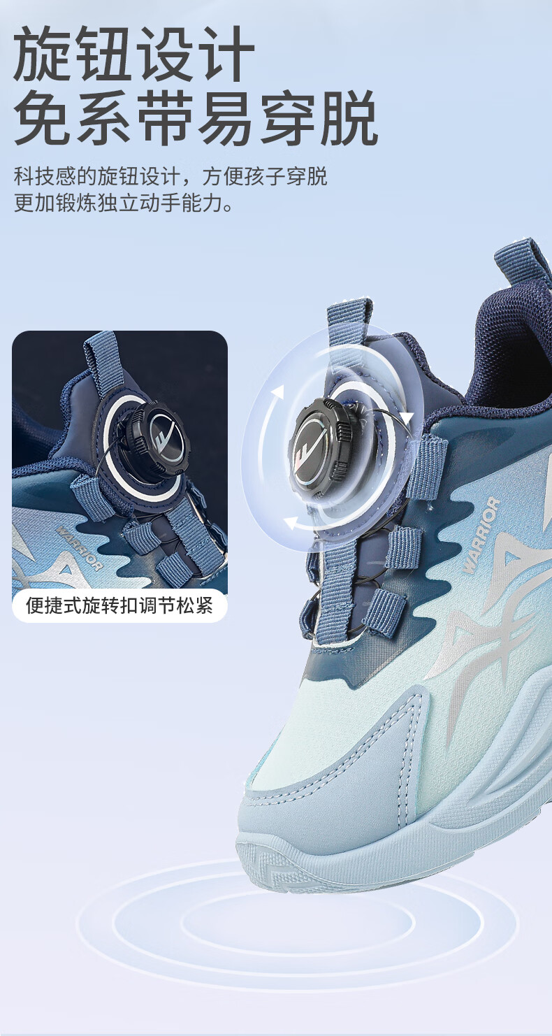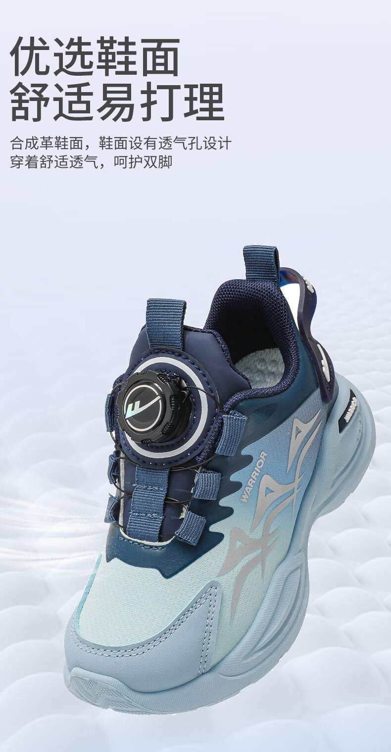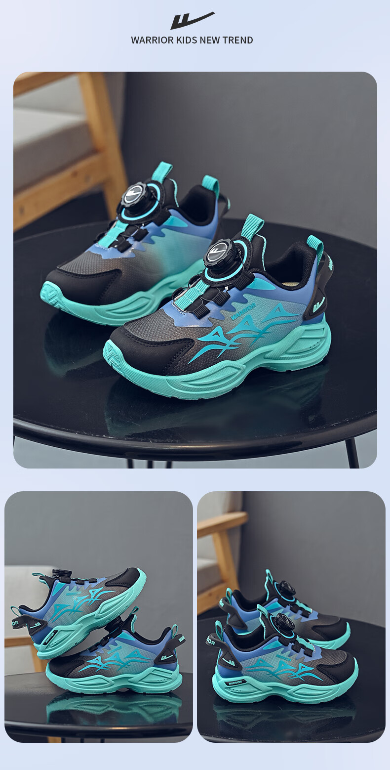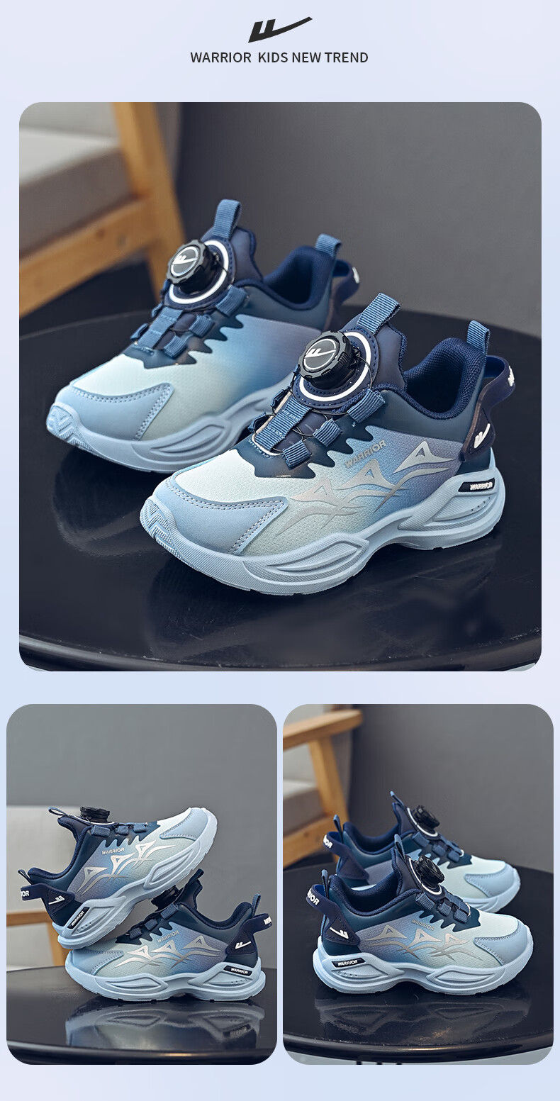 Warrior Children's Shoes Boys' Casual Shoes Spring and Autumn Knob Buckle Children's Sports Shoes WZ-1465 Black/Blue/Dark Blue 36