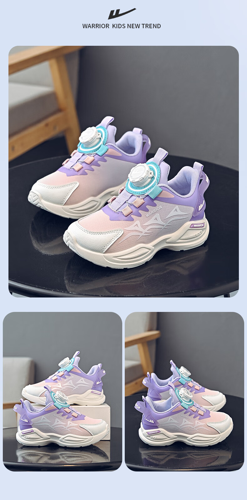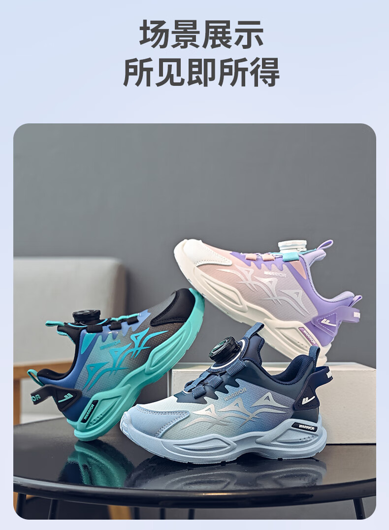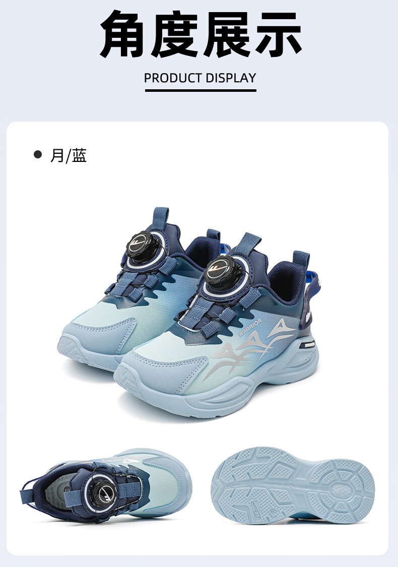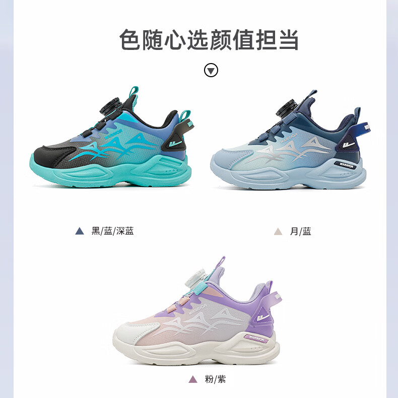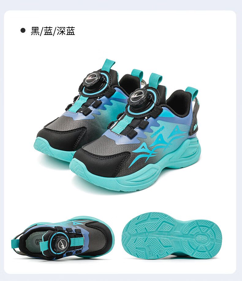 Warrior Children's Shoes Boys' Casual Shoes Spring and Autumn Knob Buckle Children's Sports Shoes WZ-1465 Black/Blue/Dark Blue 36