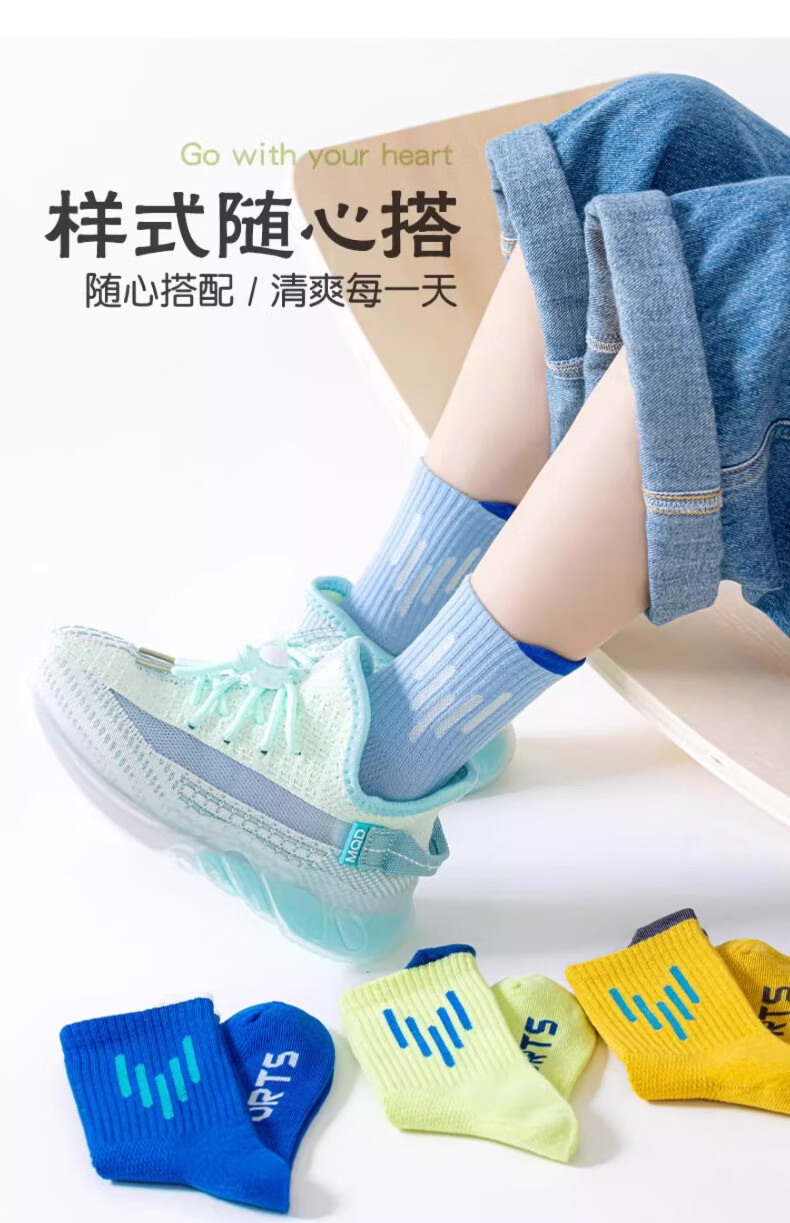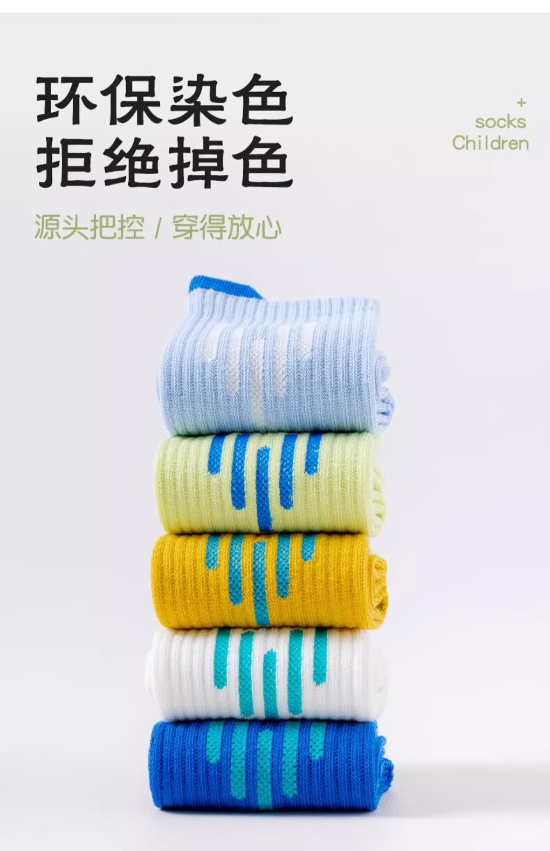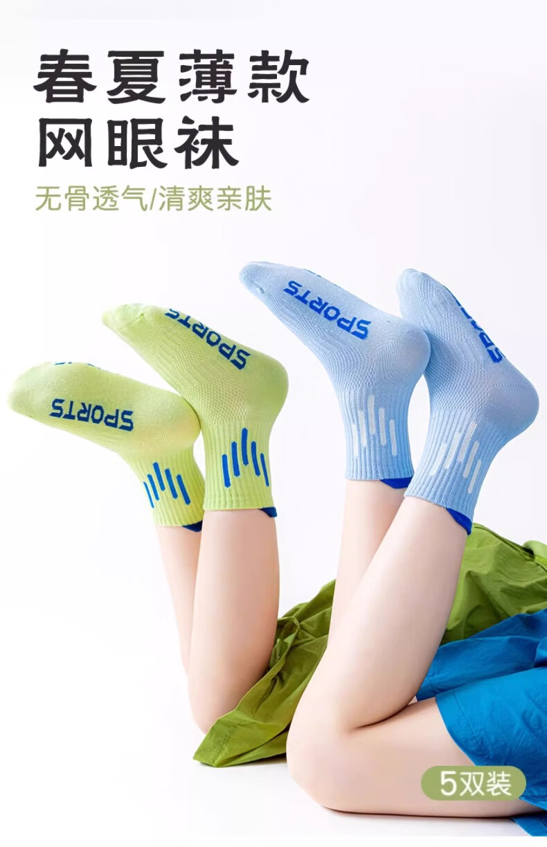 Yu Zhaolin 5 pairs of children's socks for boys spring and autumn thin cotton sports deodorant and sweat-absorbent boys' mesh youth boneless middle tube