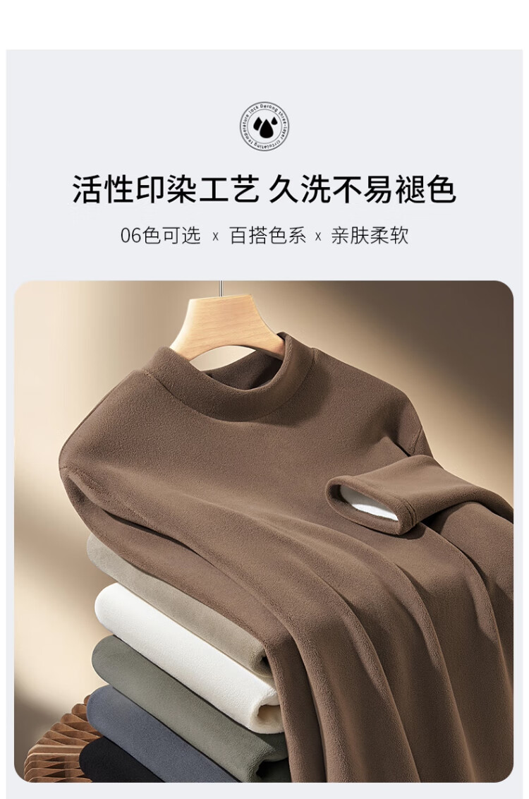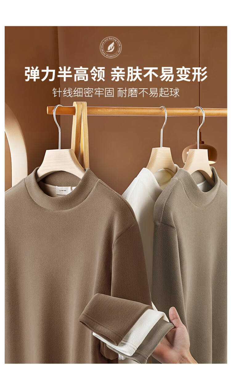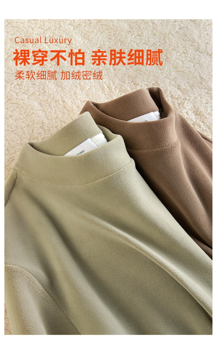 Zaishuo lambswool plus velvet thickened men's base layer autumn and winter cold-proof thermal underwear for inner wear heating mid-collar single top