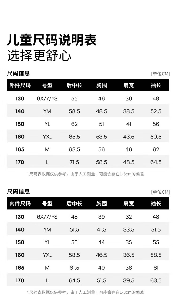 China (cm) 165 / 88-90 170 / 96-98 175 / 108-110 180 / 118-122 185 / 126-130