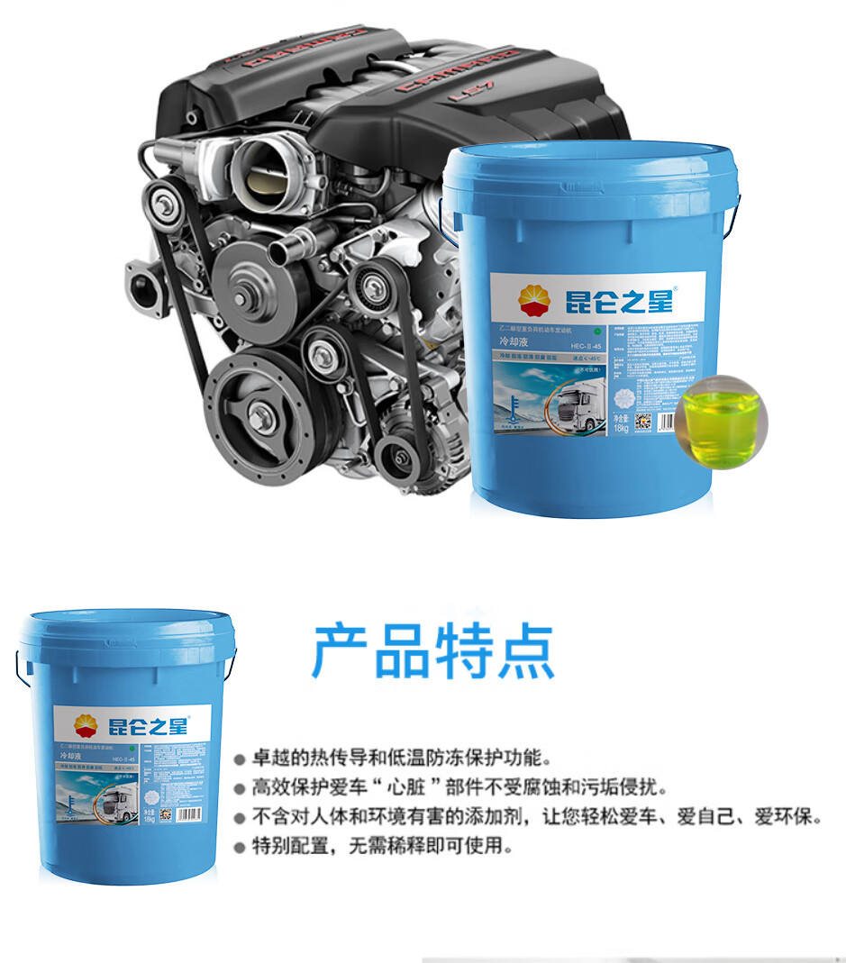 Kunlun Star HEC--45 ethylene glycol heavy-duty motor vehicle engine coolant 18kg/barrel