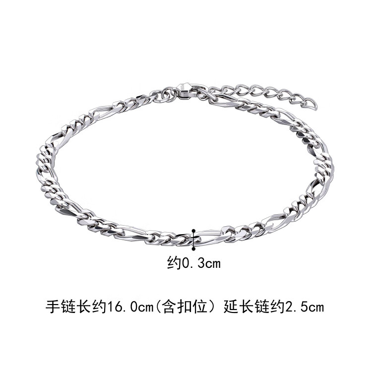 Lukfook Jewelry Platinum Bracelet Figaro Platinum 950 Versatile Plain Chain Price L04TBPB0025 Approximately 7.59 grams
