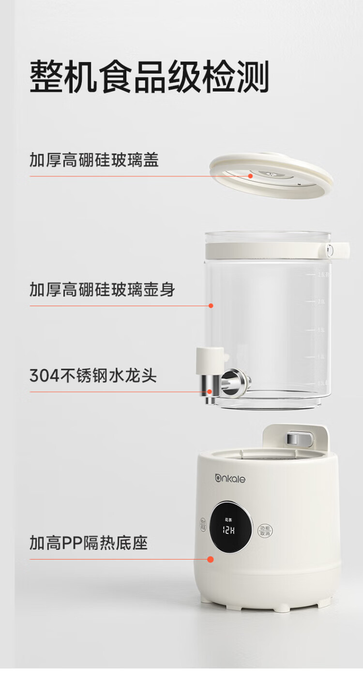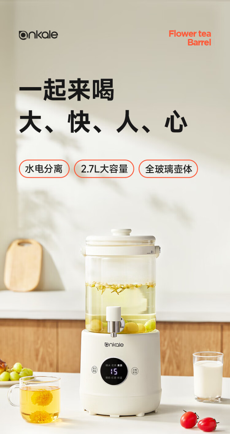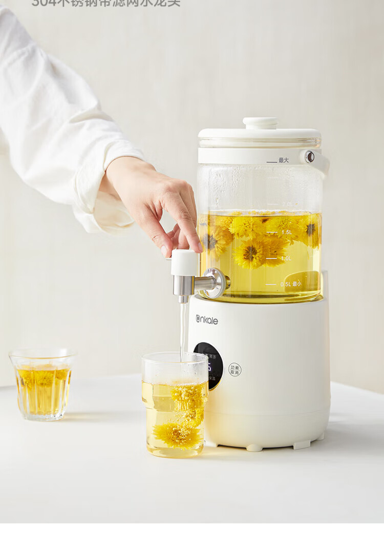 Ankale all-glass health pot 2.7L multi-functional household large-capacity pure glass faucet kettle boiling teapot constant temperature stewing all-in-one flower teapot AJL-25Y01 with tea drain