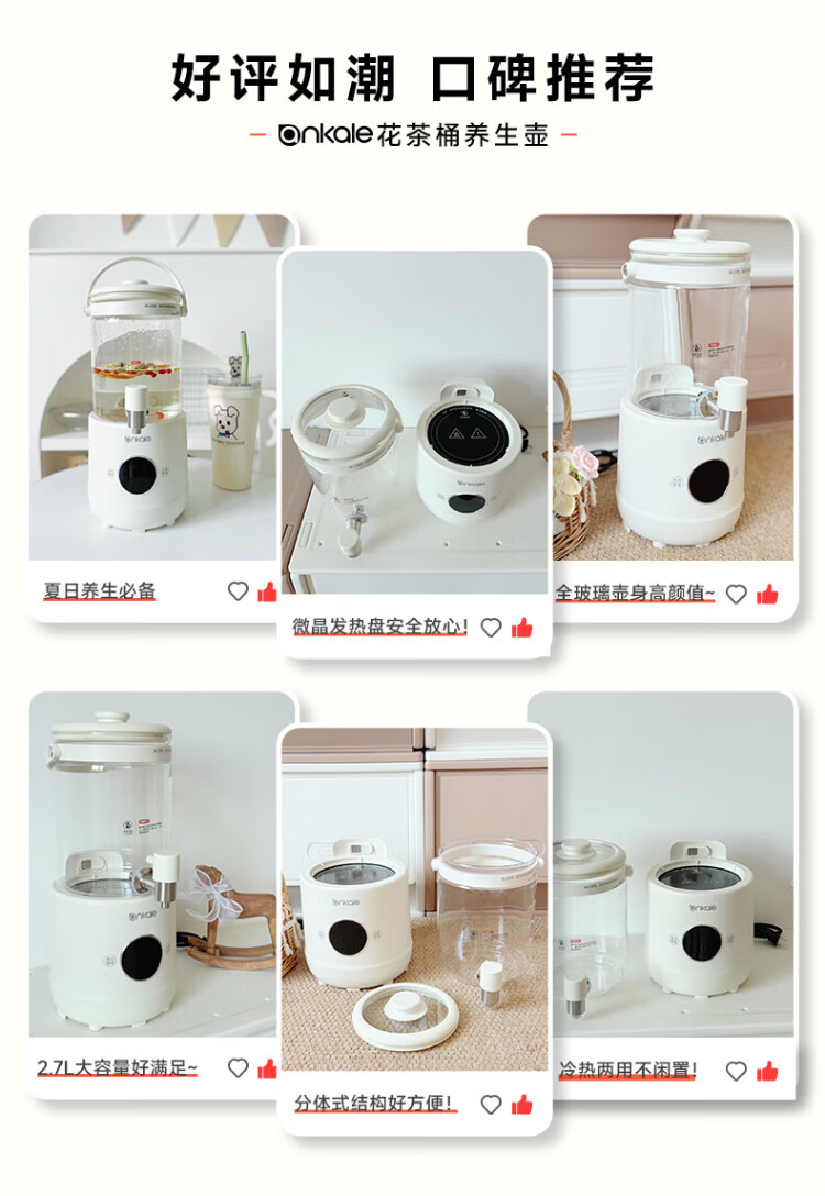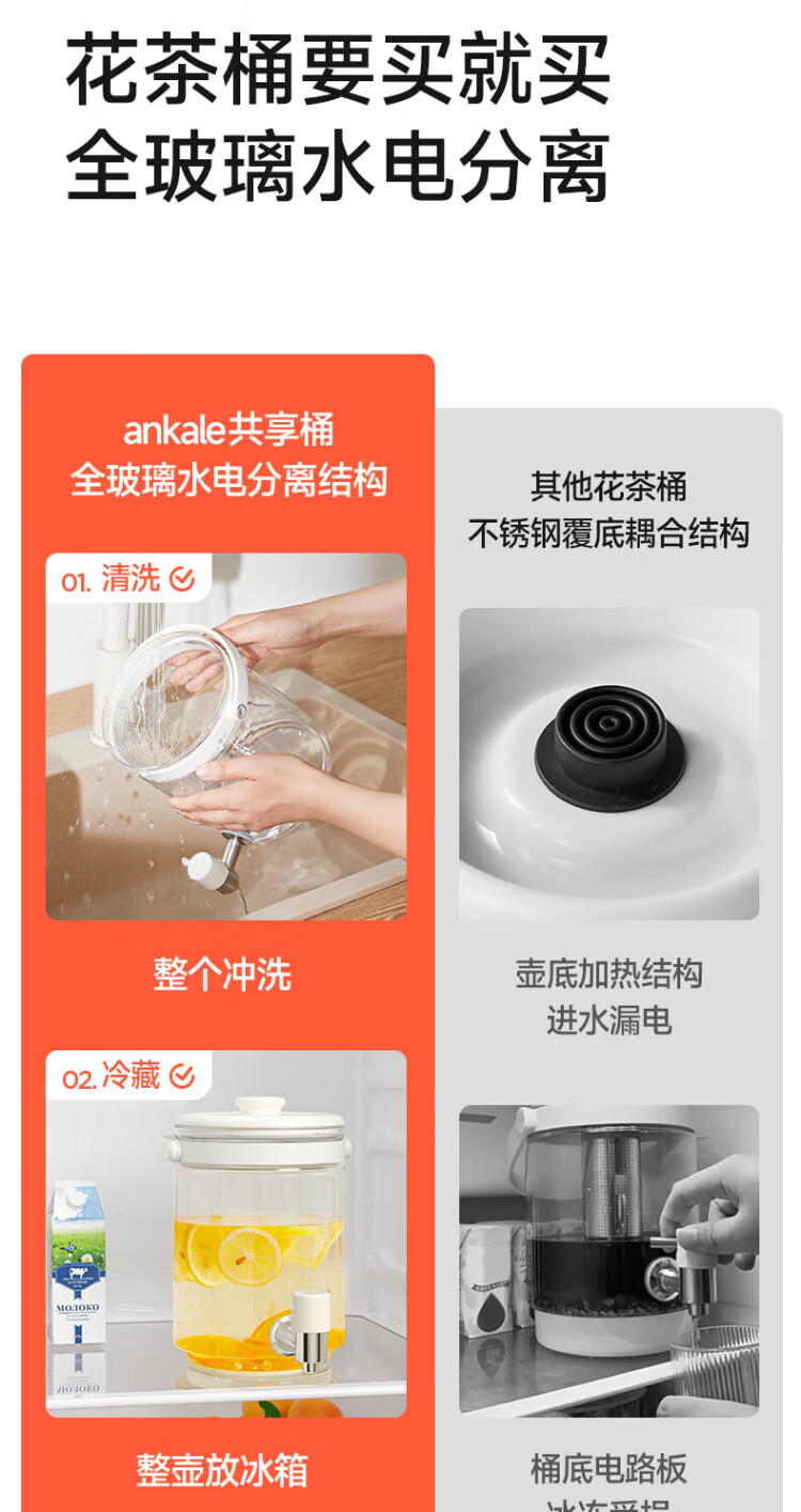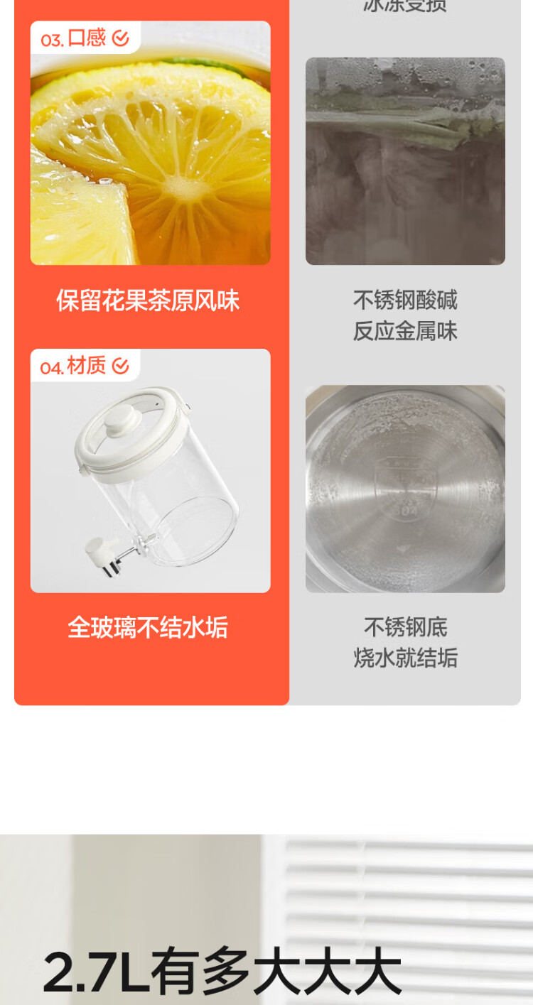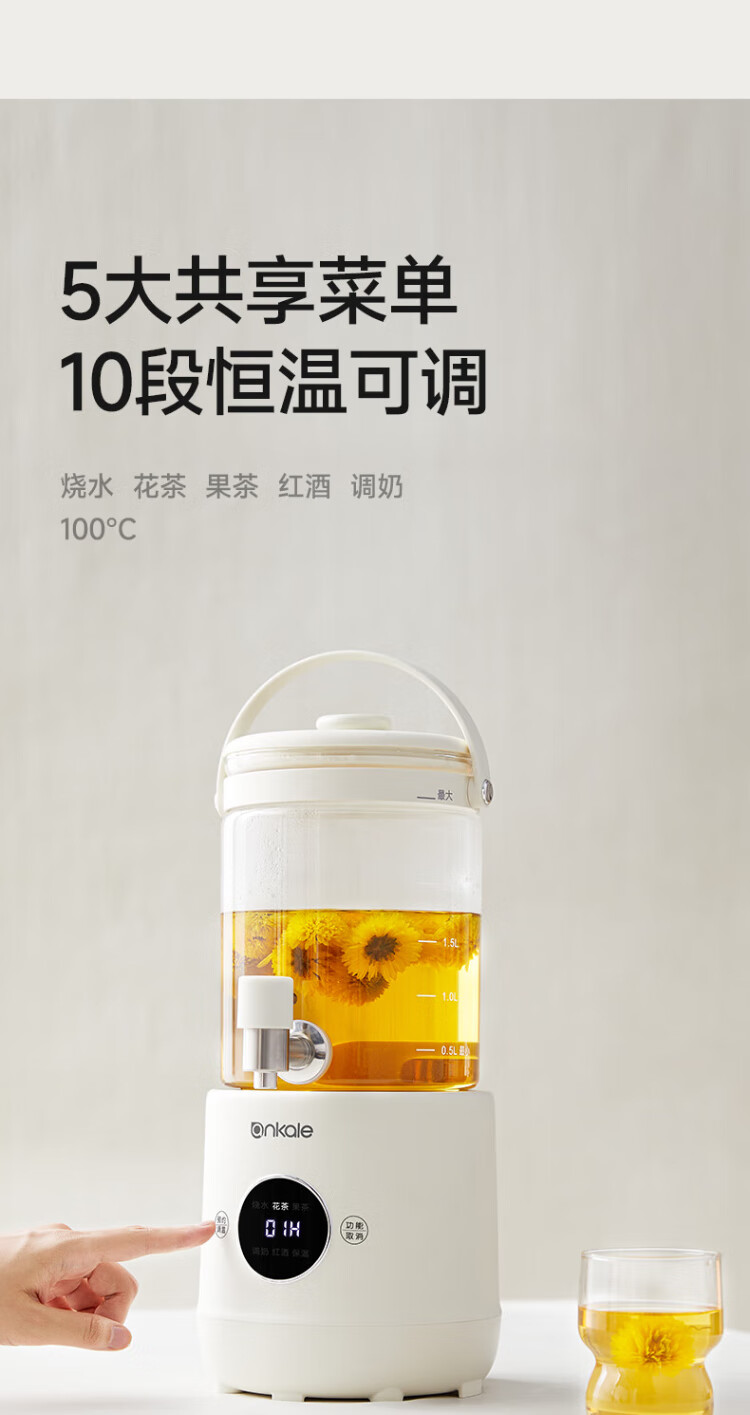 Ankale all-glass health pot 2.7L multi-functional household large-capacity pure glass faucet kettle boiling teapot constant temperature stewing all-in-one flower teapot AJL-25Y01 with tea drain