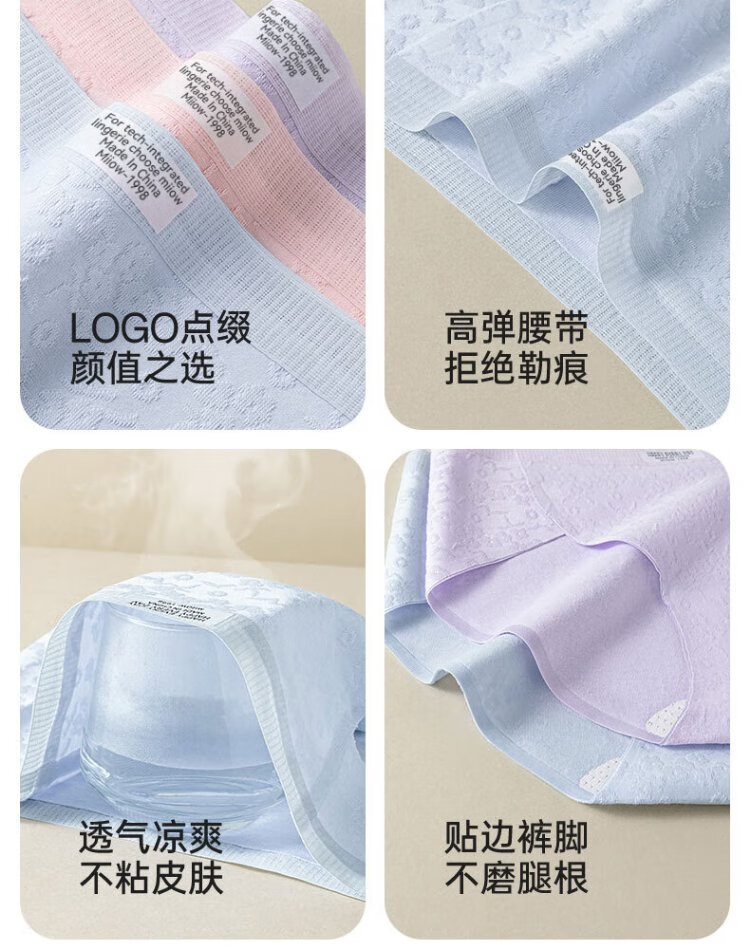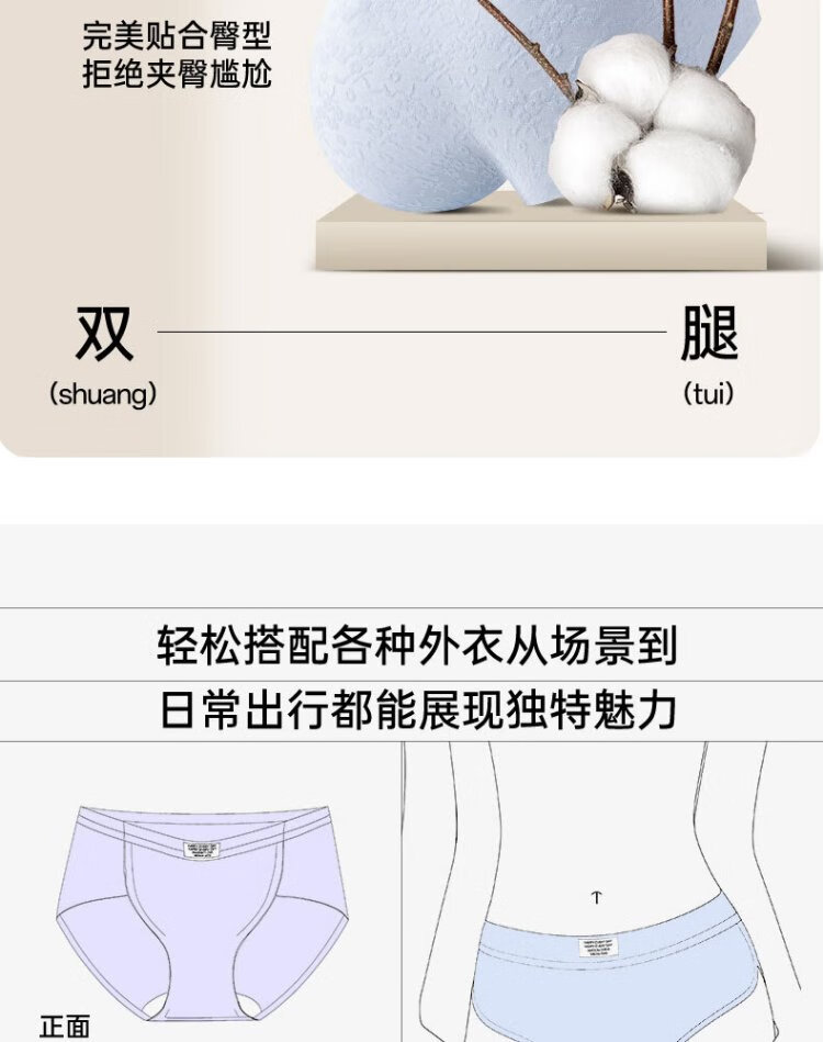 Catman underwear women's pure cotton mid-waist seamless breathable 10A cotton antibacterial crotch girls' triangle shorts without pinching the buttocks