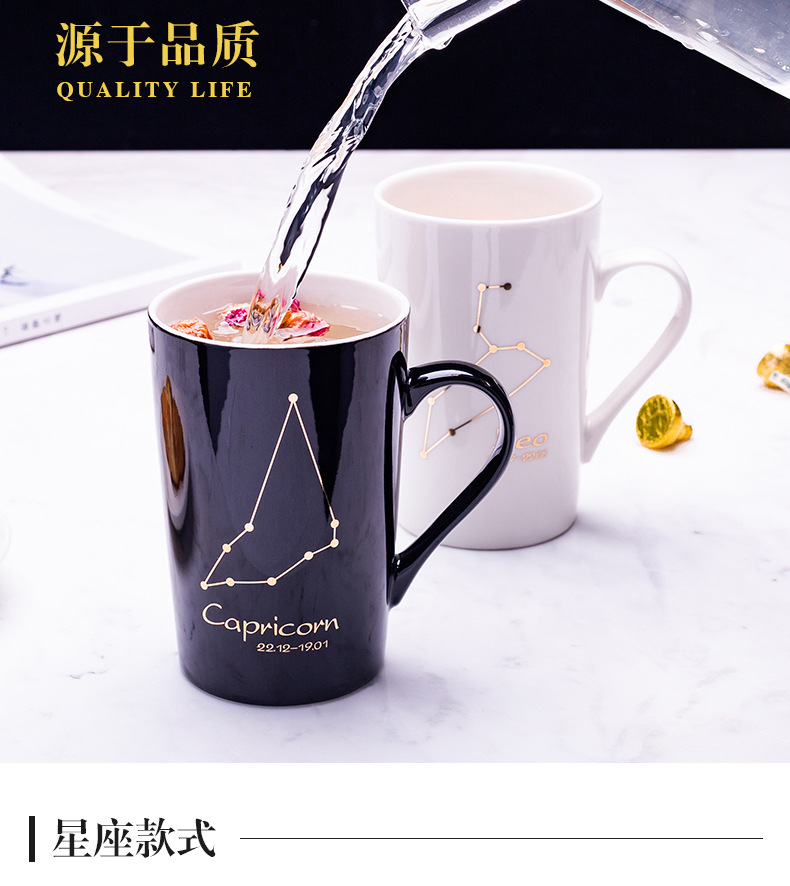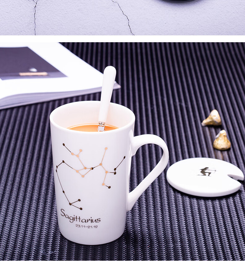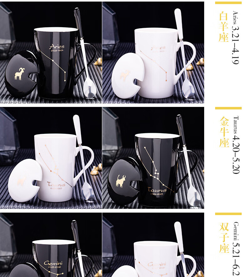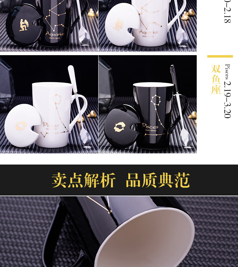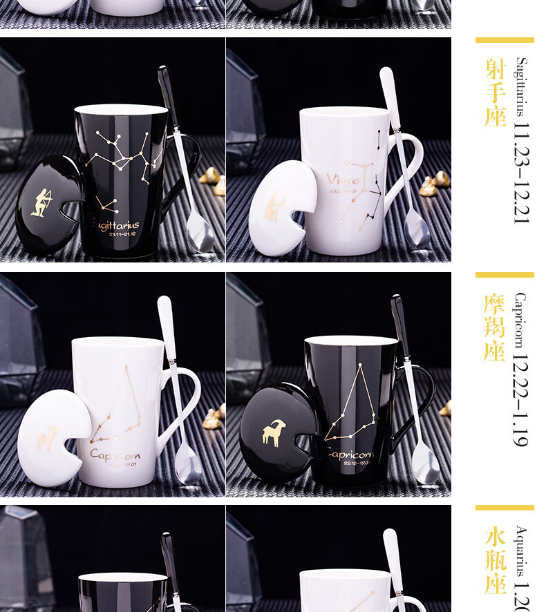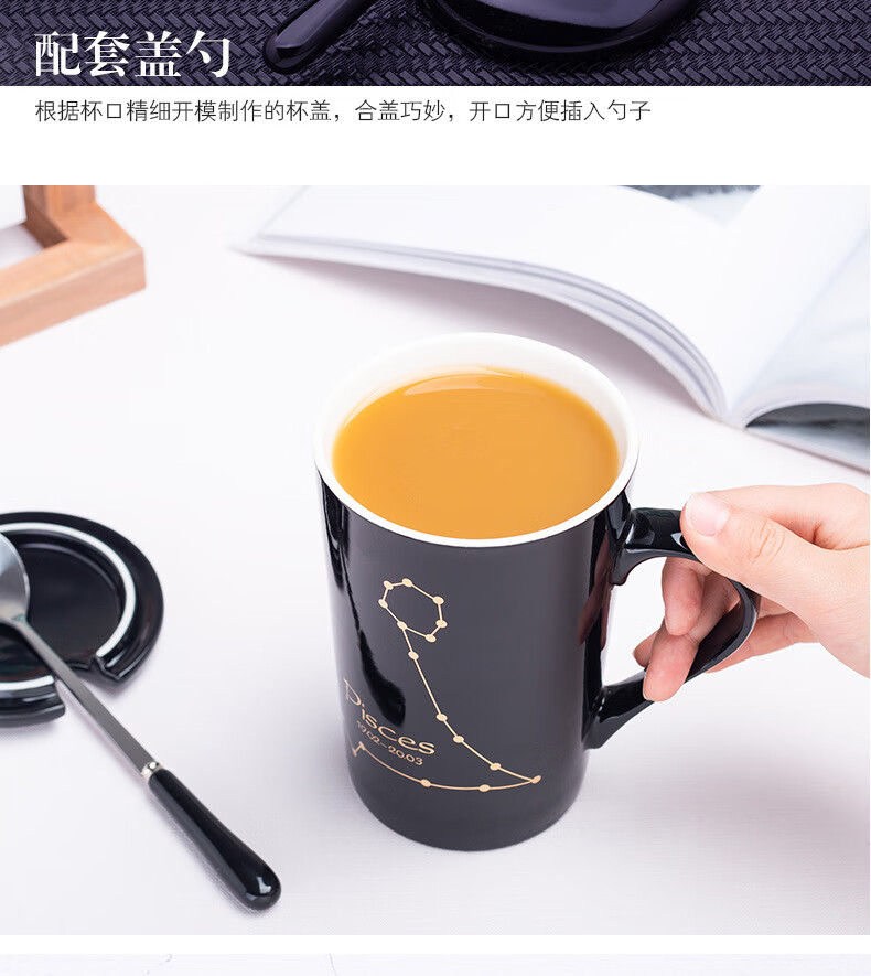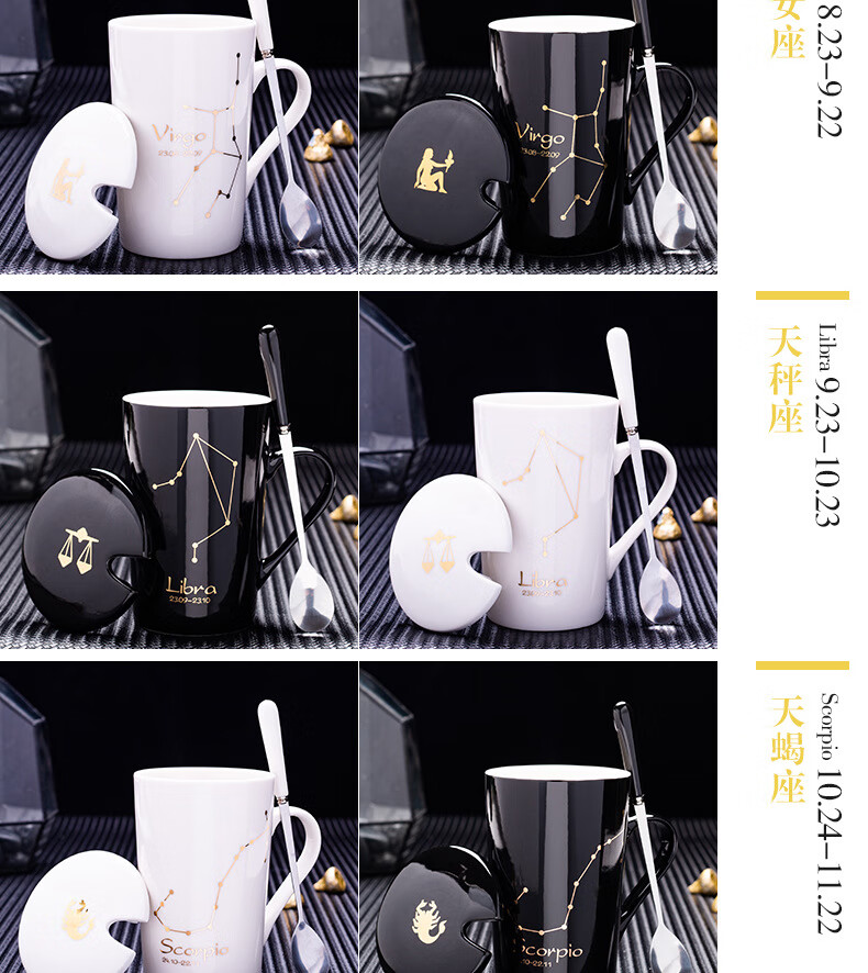 Jinshun Xinrong Twelve Constellations Creative Personalized Cup Ceramic Mug with Covered Spoon Home Drinking Cup Office Tea Cup Couple Black Libra (with Covered Spoon) 401-500ml