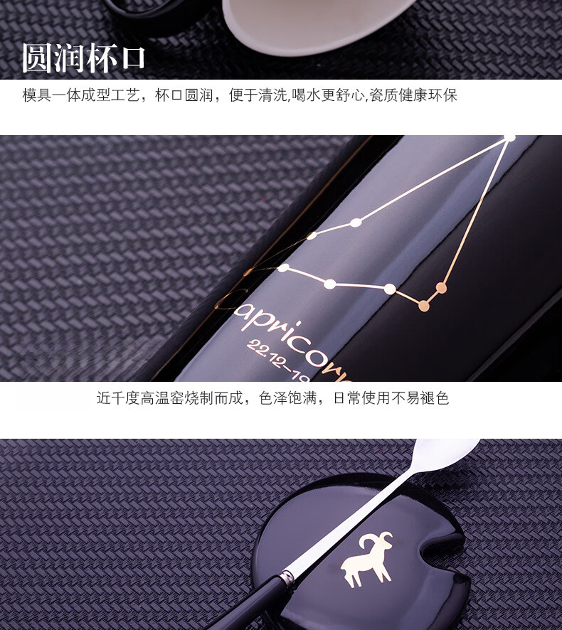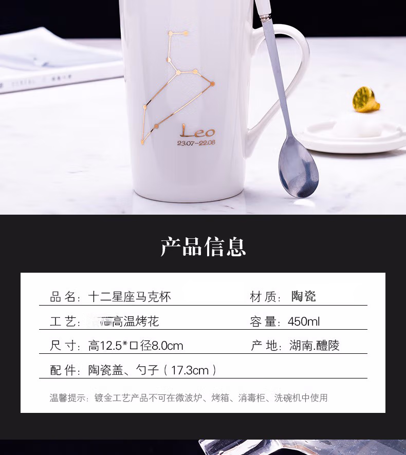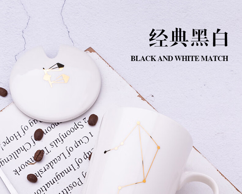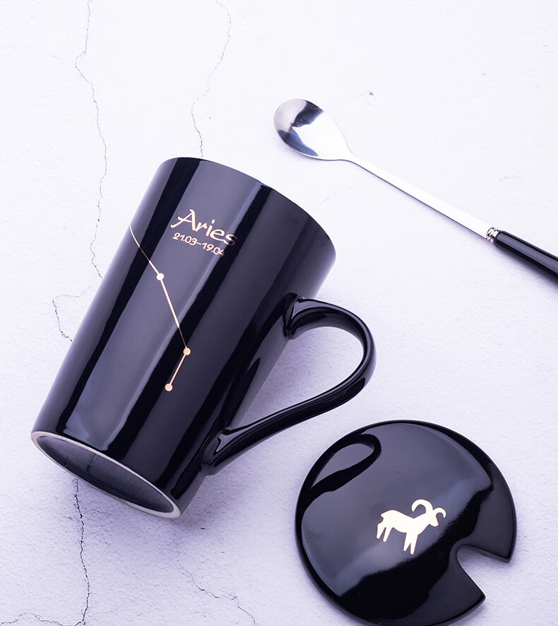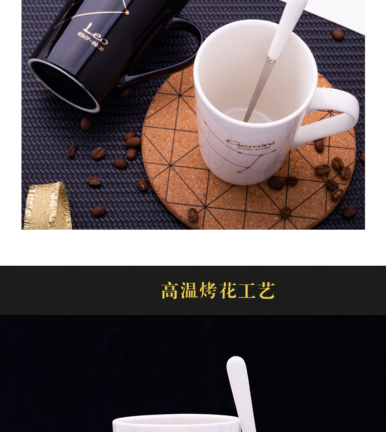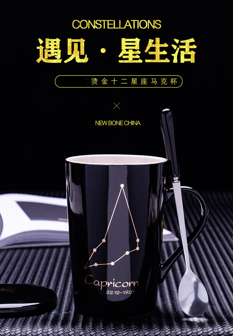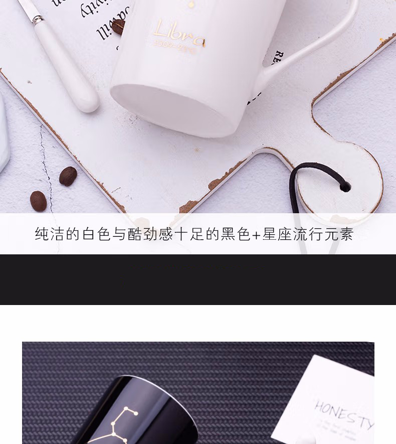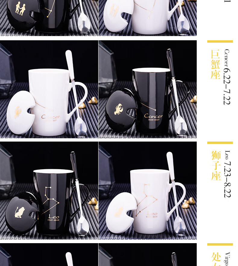 Jinshun Xinrong Twelve Constellations Creative Personalized Cup Ceramic Mug with Covered Spoon Home Drinking Cup Office Tea Cup Couple Black Libra (with Covered Spoon) 401-500ml