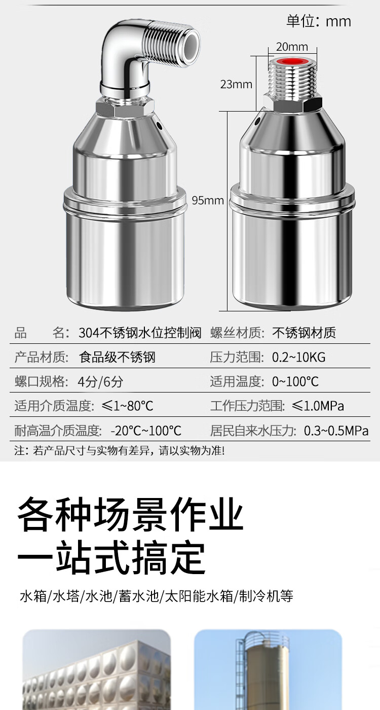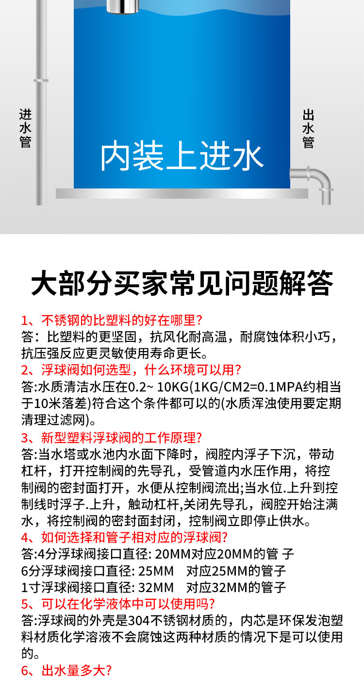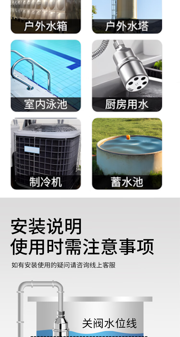 304 stainless steel float ball valve, water full self-stop switch, water level controller, water tower water tank, fully automatic water supply stop valve, 6-minute water inlet
