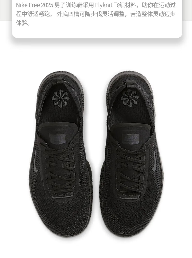 Nike NIKE Men's Training Shoes NIKE FREE 2025 Sports Shoes HF1078-001 Black 41
