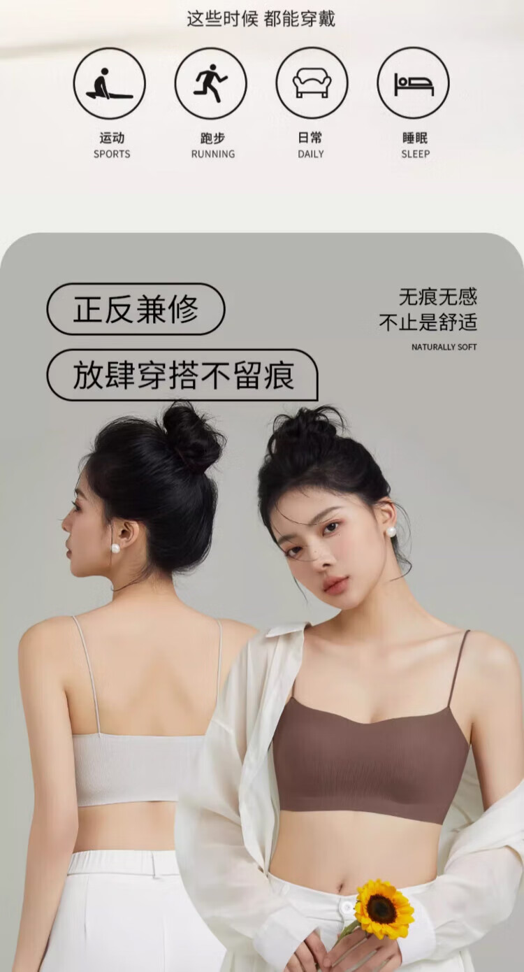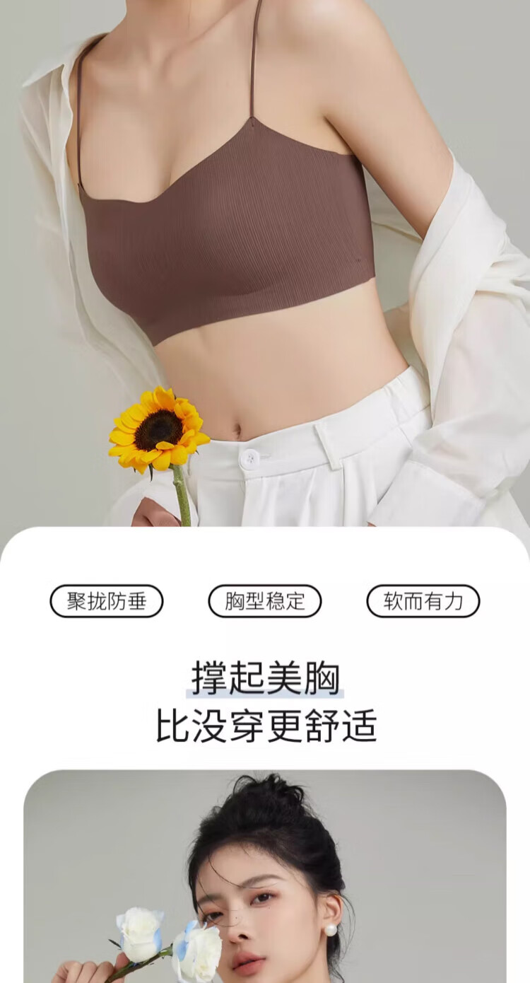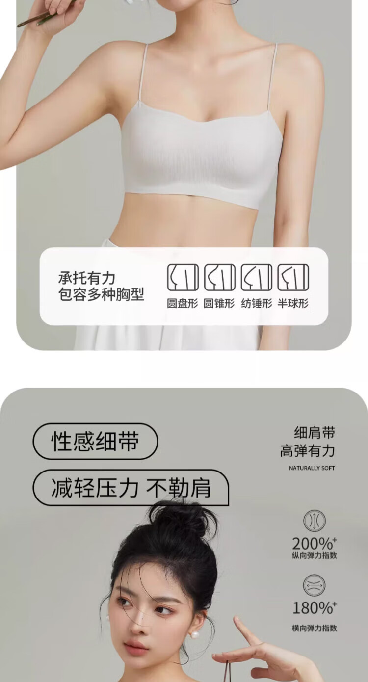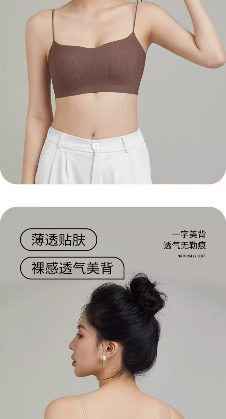 Ancient and modern (GUJIN) special spaghetti strap underwear for wearing suspenders, women's seamless invisible small breast push-up non-slip beautiful back bra and tube top