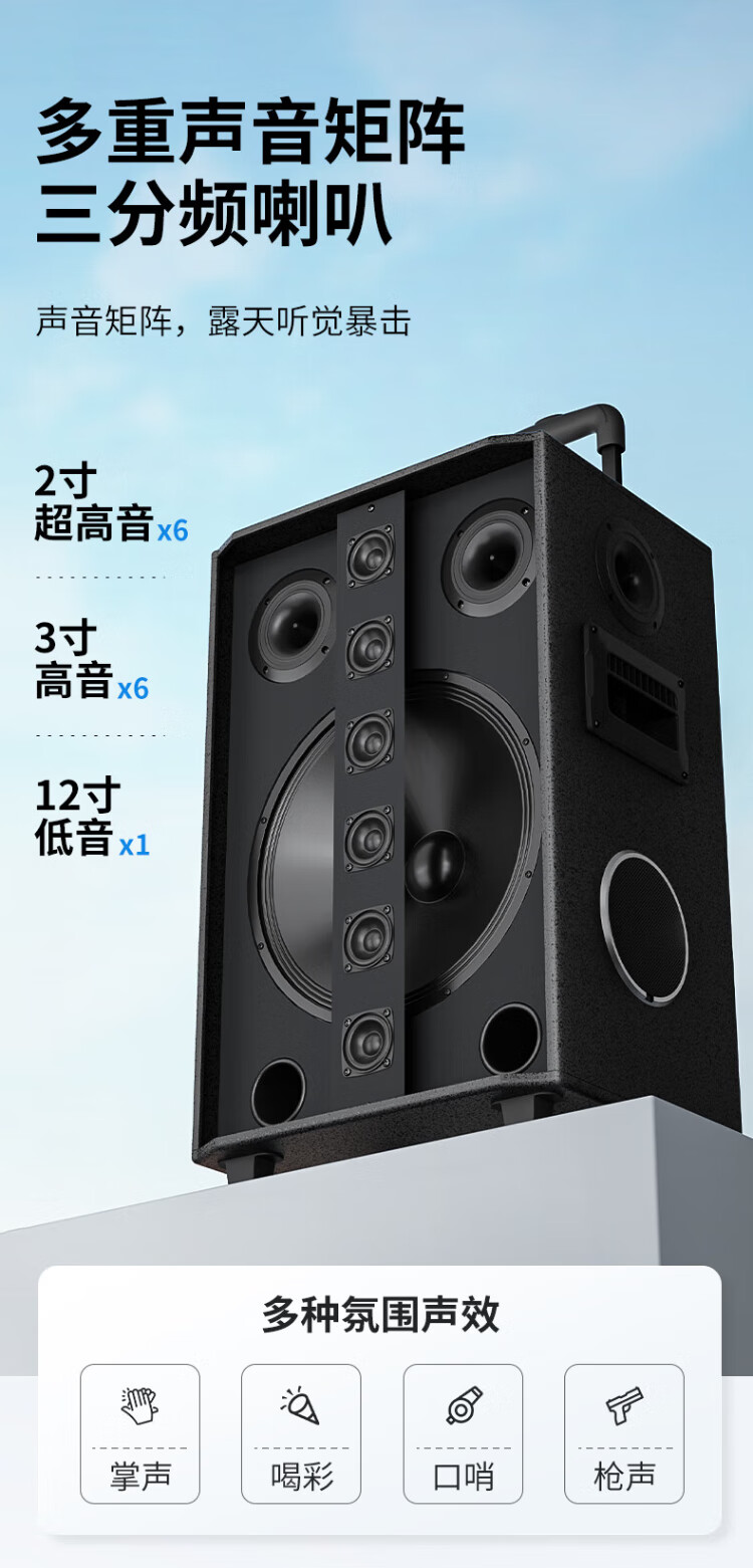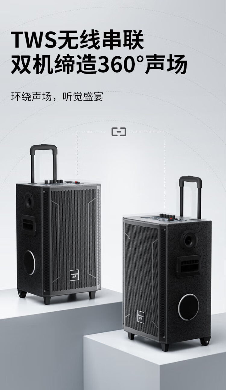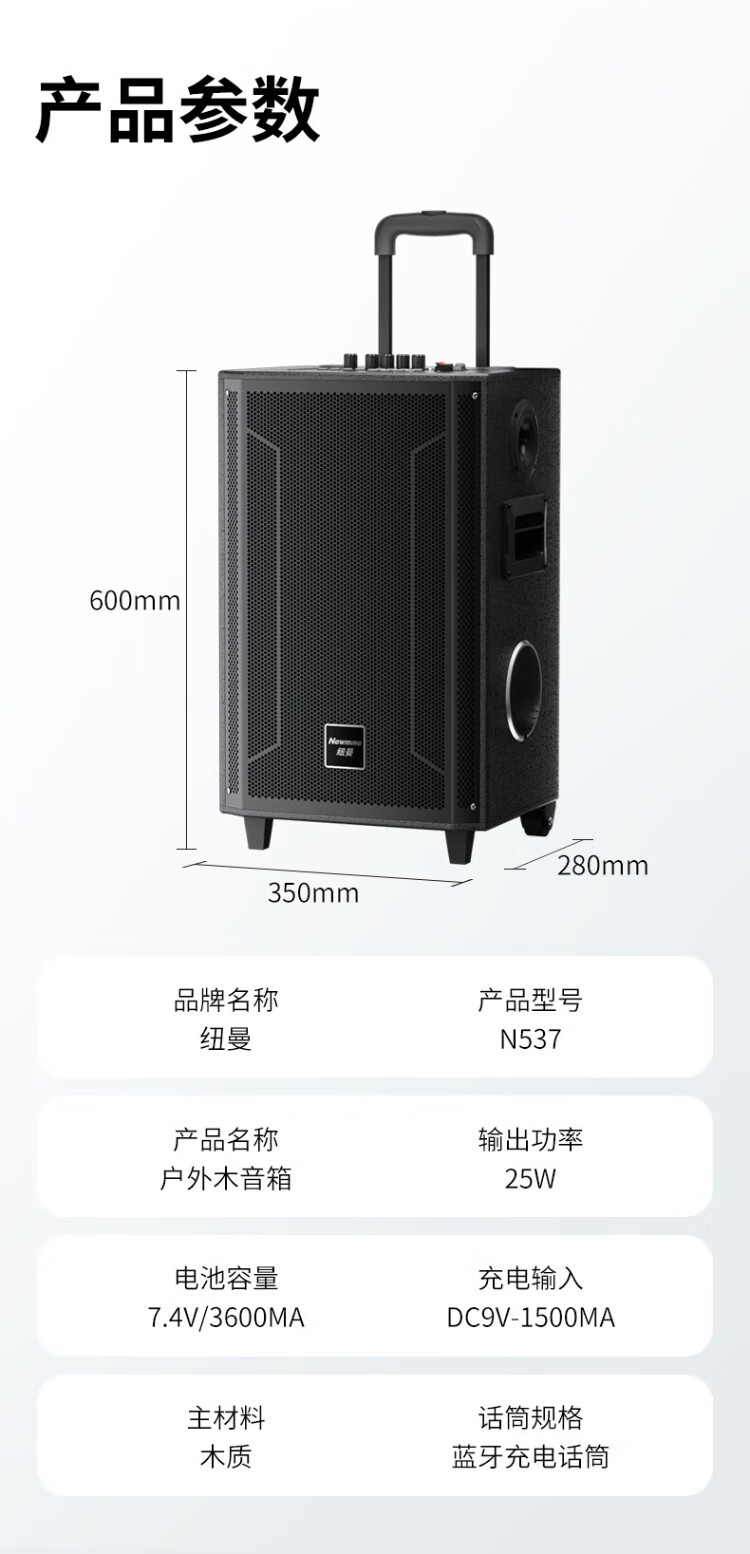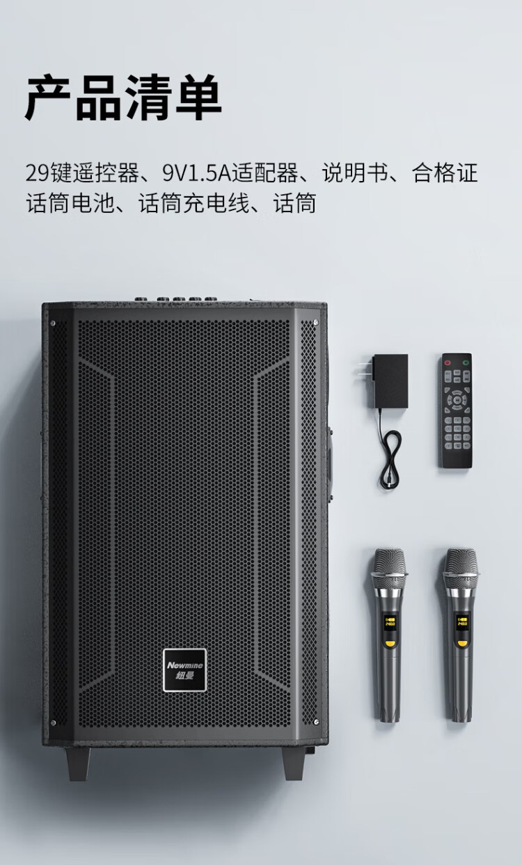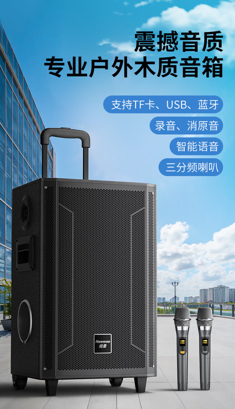 Newmine N537 12-inch Square Dance Bluetooth Speaker High Power Outdoor Mobile Portable Trolley Home Karaoke Large Volume Wireless Speaker Super Long Battery Life Dual Microphone 13 Speakers