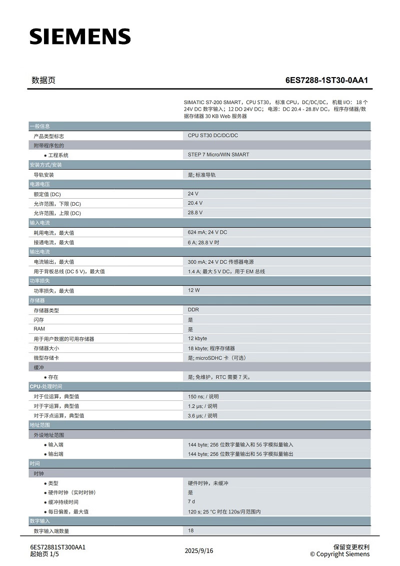Siemens S7-200 SMART CPU ST30 CPU controller 6ES7288-1ST30-0AA1 transistor output module
