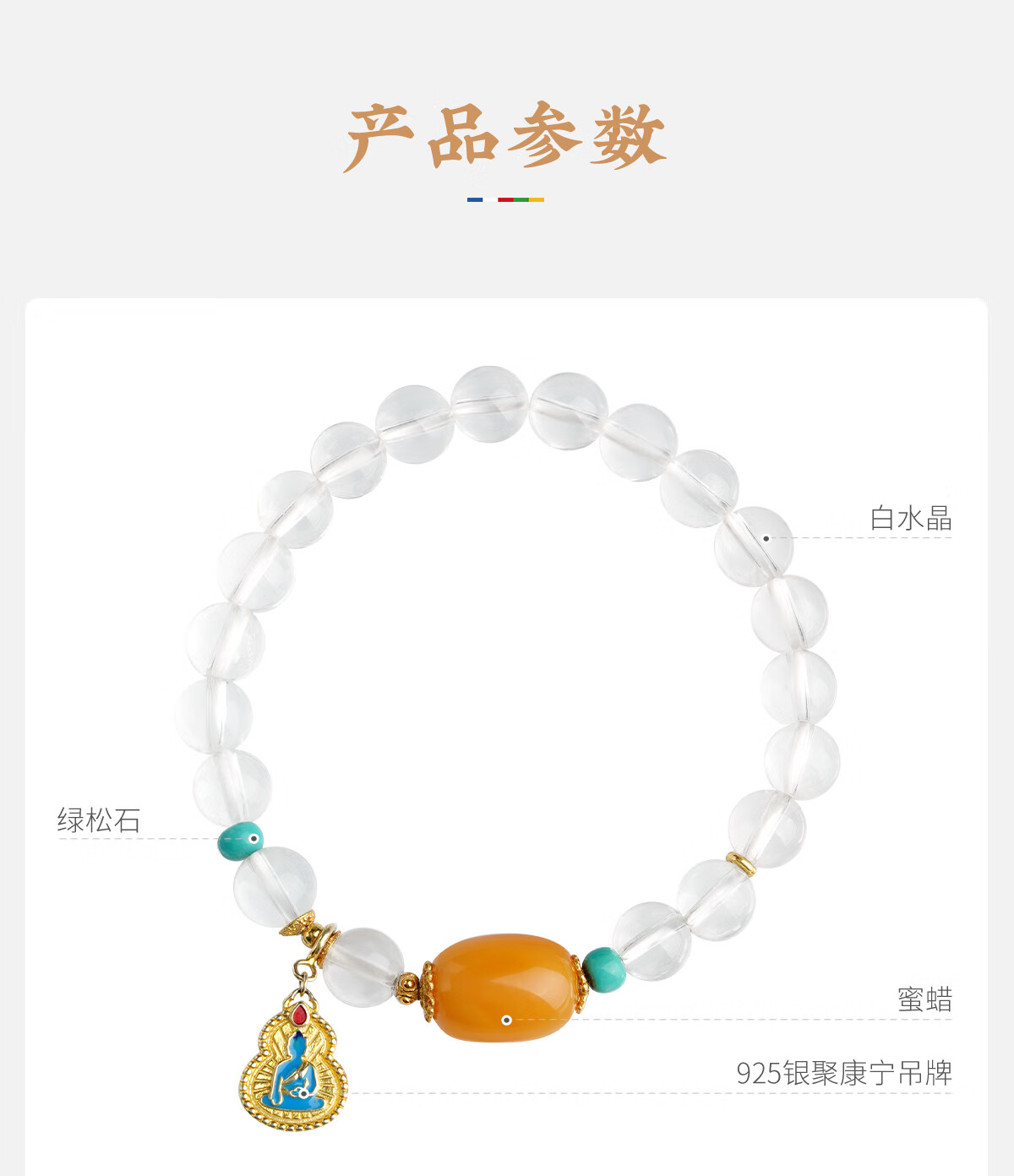 Potala Palace White Crystal Beeswax Bracelet Turquoise 925 Silver Zodiac Year Transfer Bead Bracelet Men and Women Birthday Gift