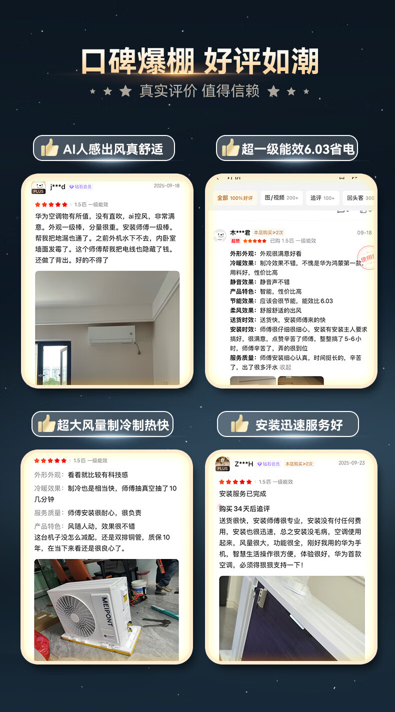 Hongmeng Smart Selection Aire acondicionado inteligente MEIPONT 1,5 HP colgado Ojo del dios del viento Súper eficiencia energética de primera clase AI sentido humano Conversión de frecuencia de refrigeración y calefacción Huawei Smart Selection Subsidio nacional MAC35V1P80HR