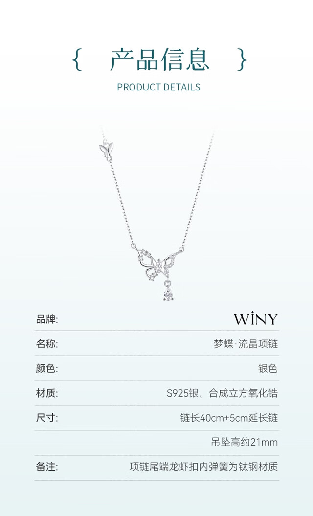 The only (Winy) butterfly sterling silver necklace women's light luxury niche high-end pendant birthday gift for girlfriend and wife jewelry