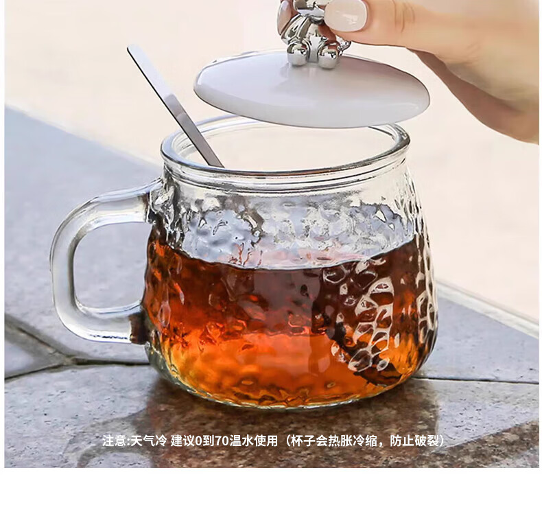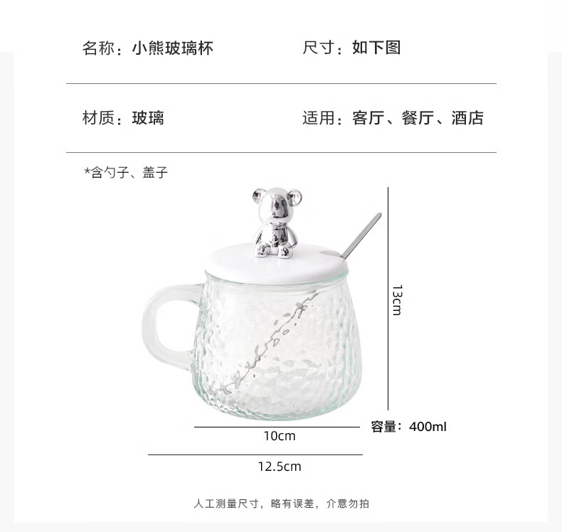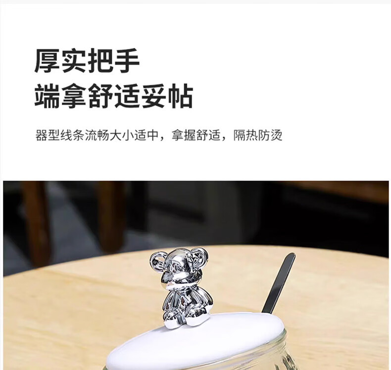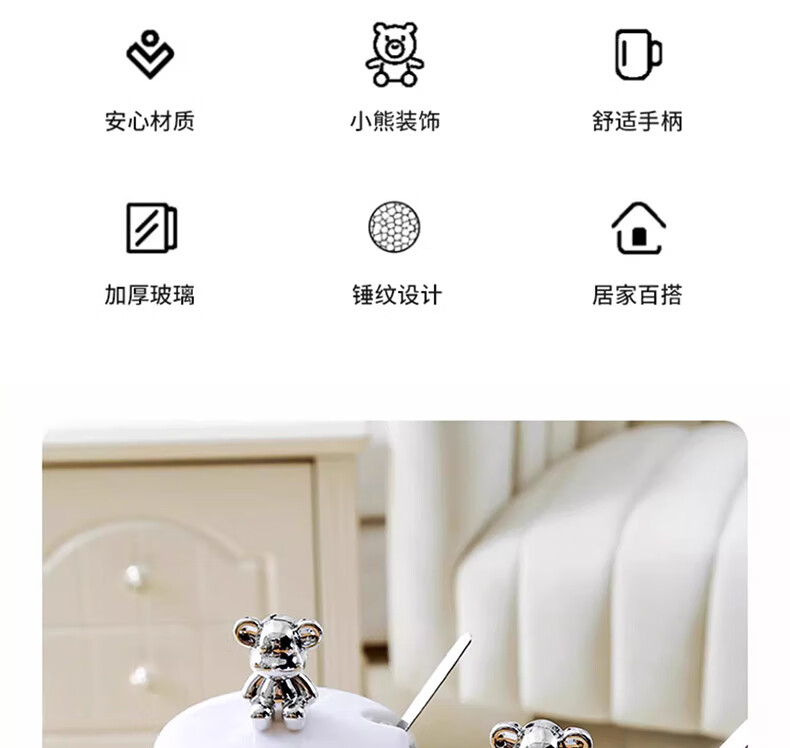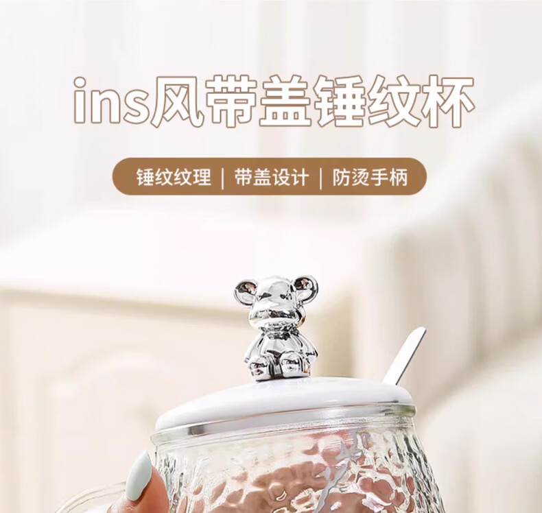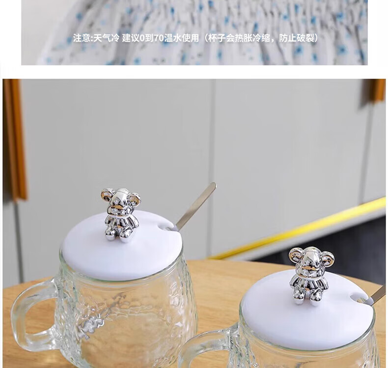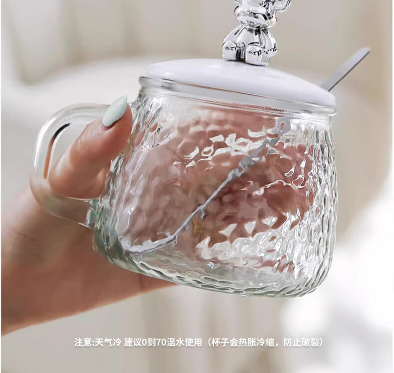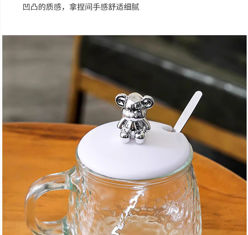 Dipur bear glass cup with lid spoon cute heat-resistant glass water cup for girls high-looking office breakfast cup ins style
