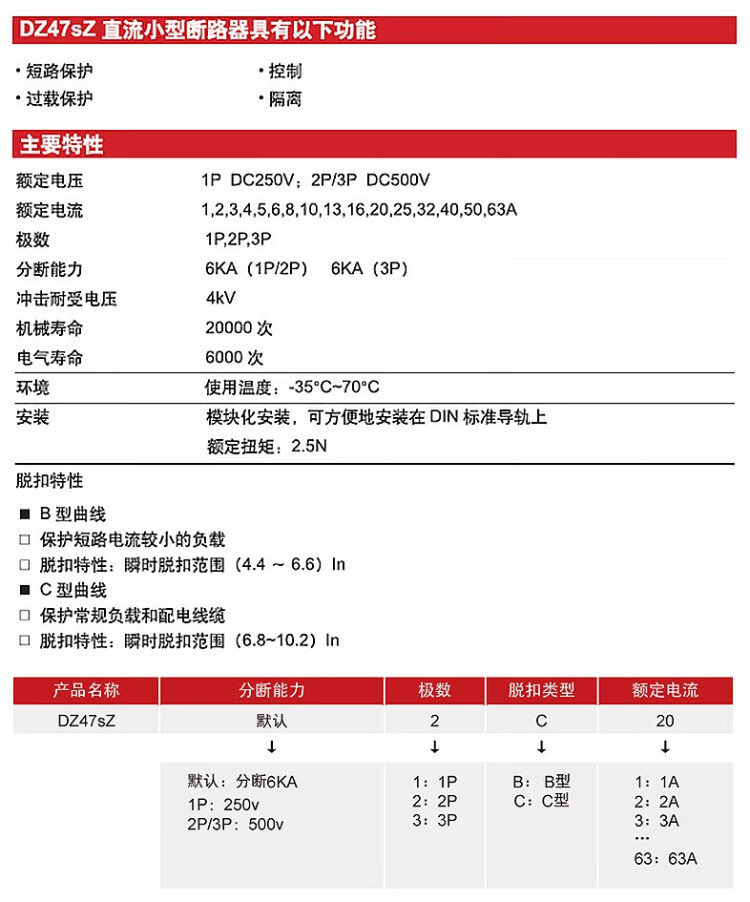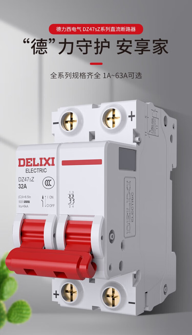 Delixi Electric DC air switch battery car air switch 1P DC circuit breaker DZ47sZ 63A