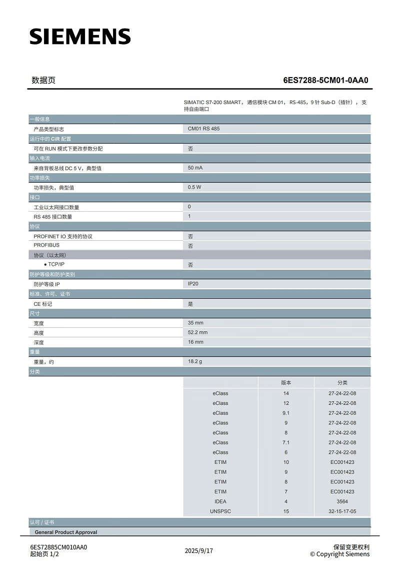 Siemens S7-200 SMART SBCM01 PLC controller 6ES7288-5CM01-0AA0 RS485/RS232 signal board