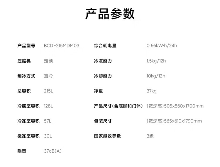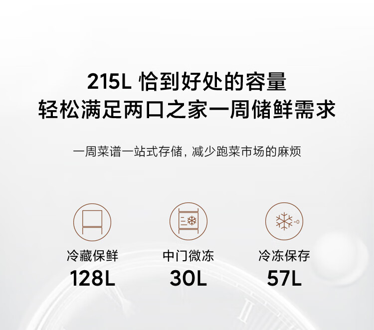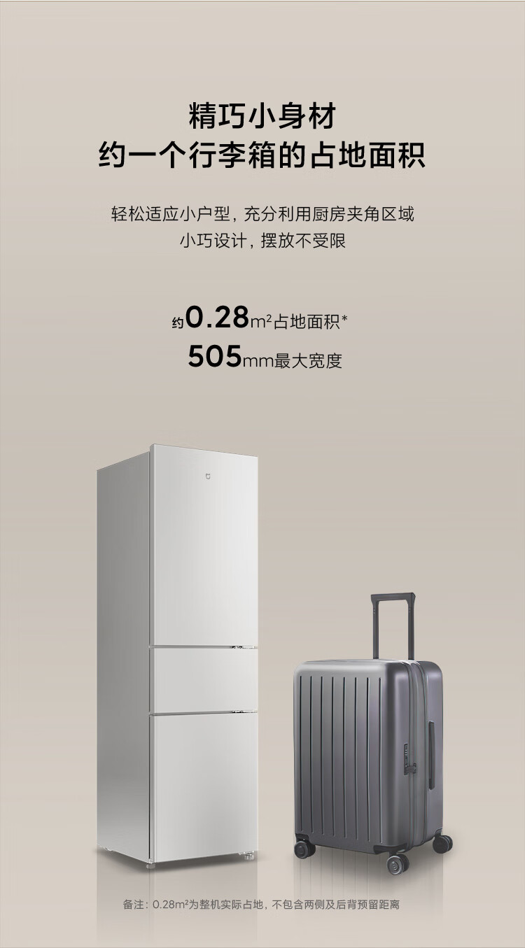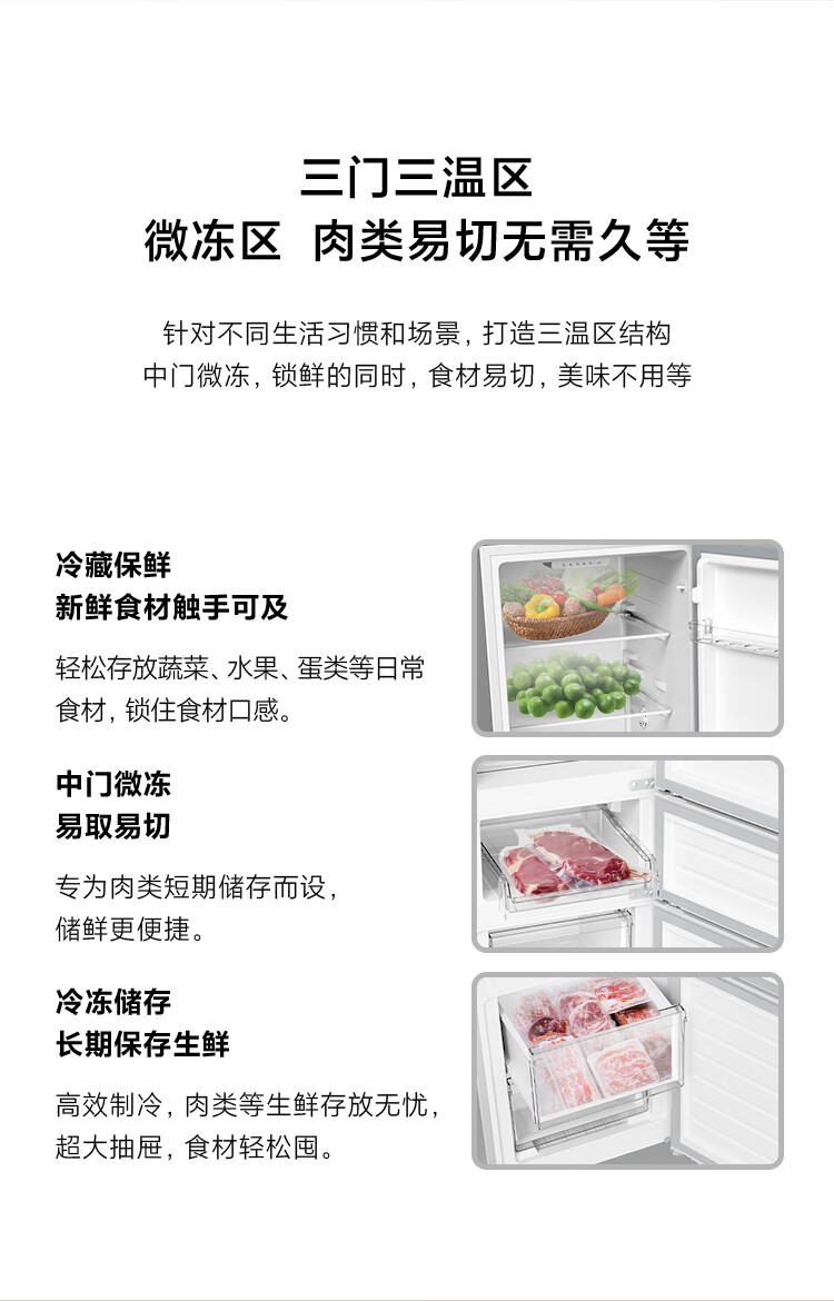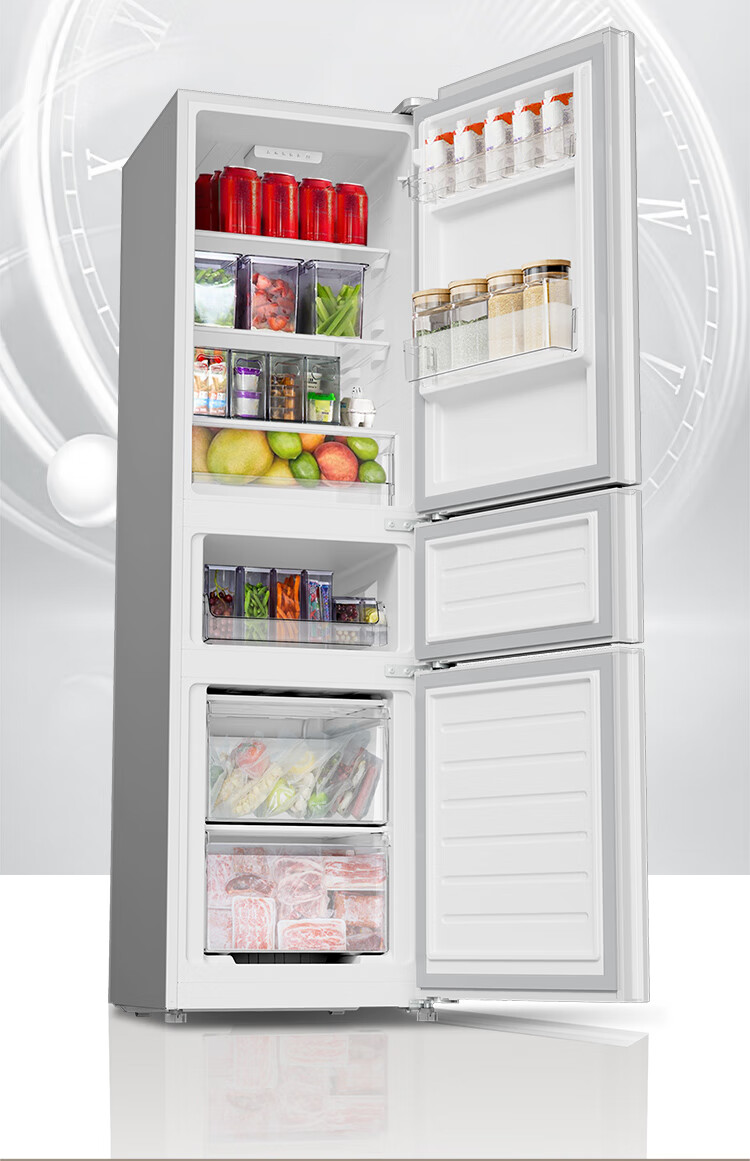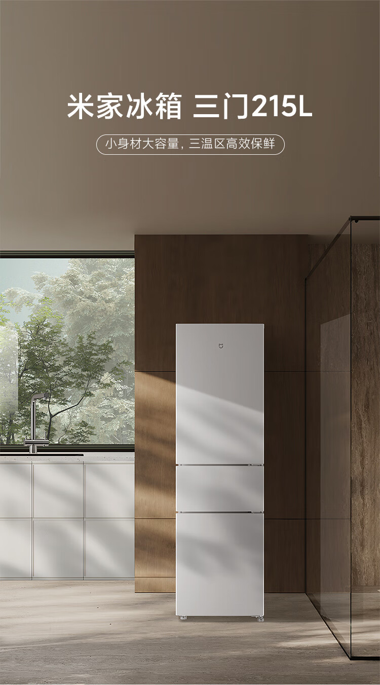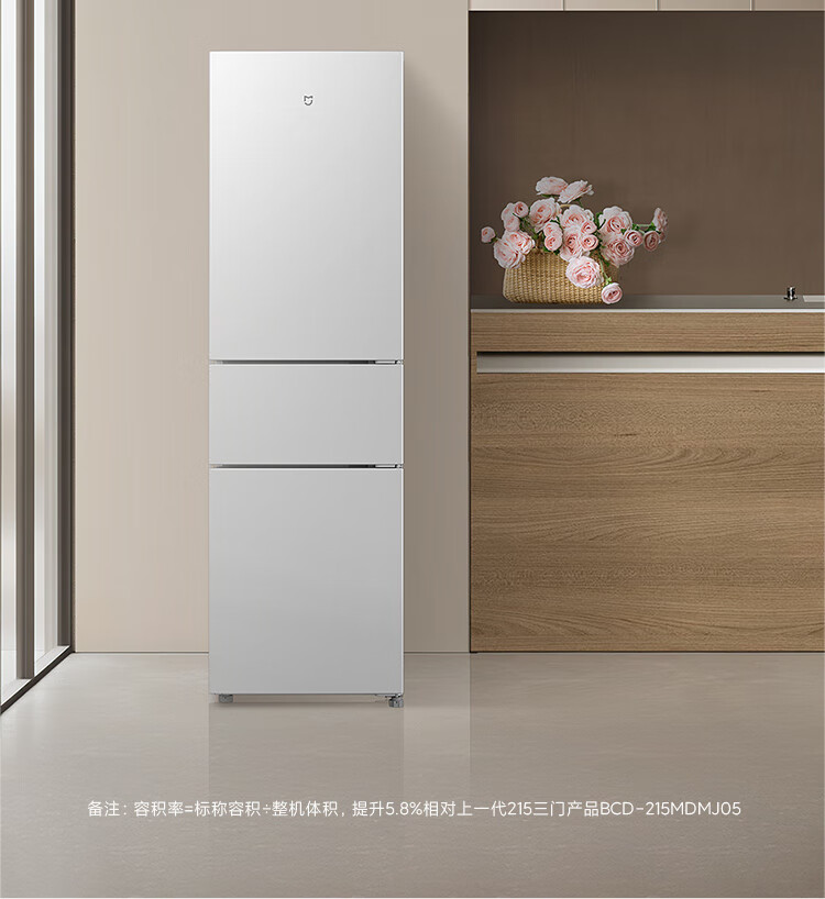 Mijia Xiaomi produces 215 liter three-door small household refrigerator, three-door, three-temperature, energy-saving, quiet operation, refrigeration and refrigeration, rental dormitory upgrade model BCD-215MDM03