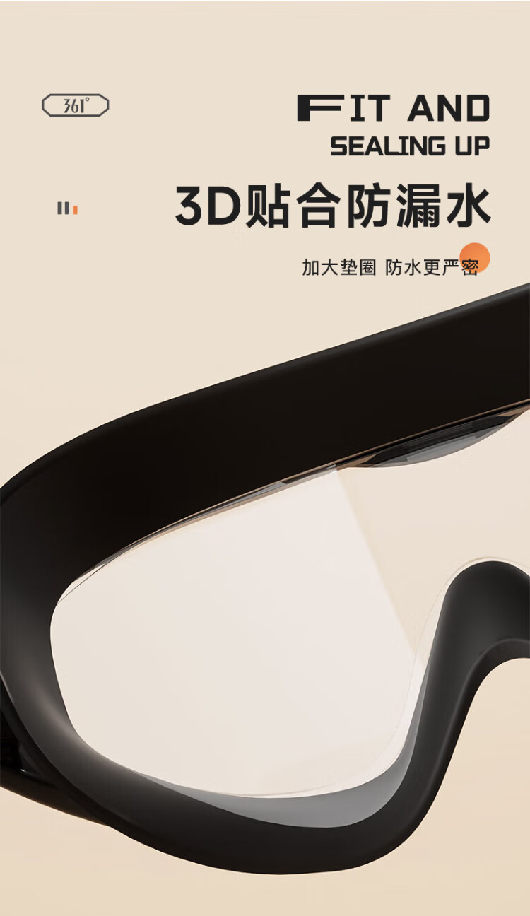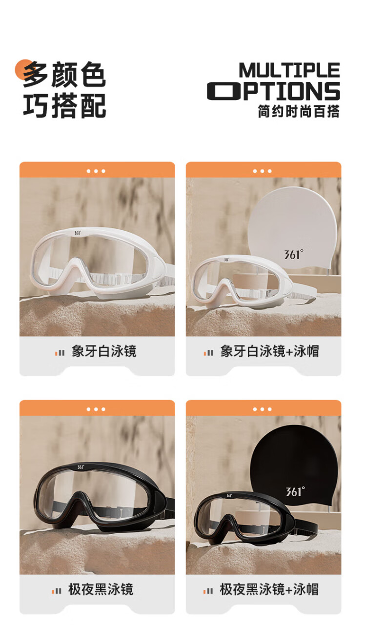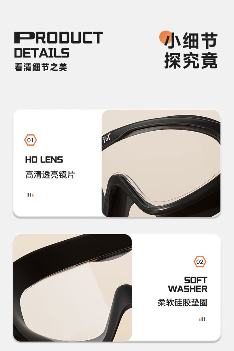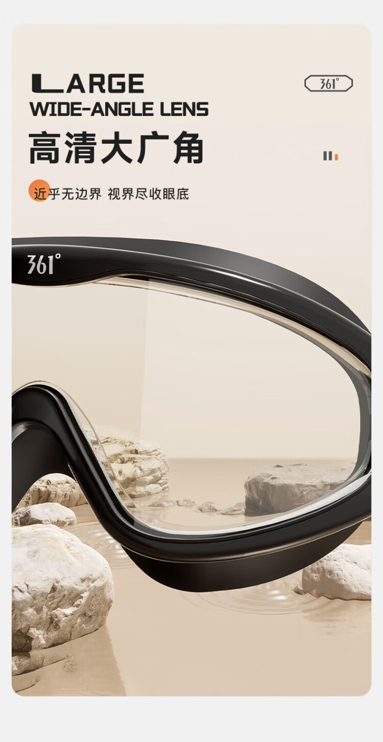 361 adult swimming goggles for men and women high-definition anti-fog and waterproof large frame one-piece professional diving swimming goggles equipment transparent white