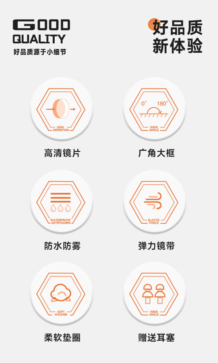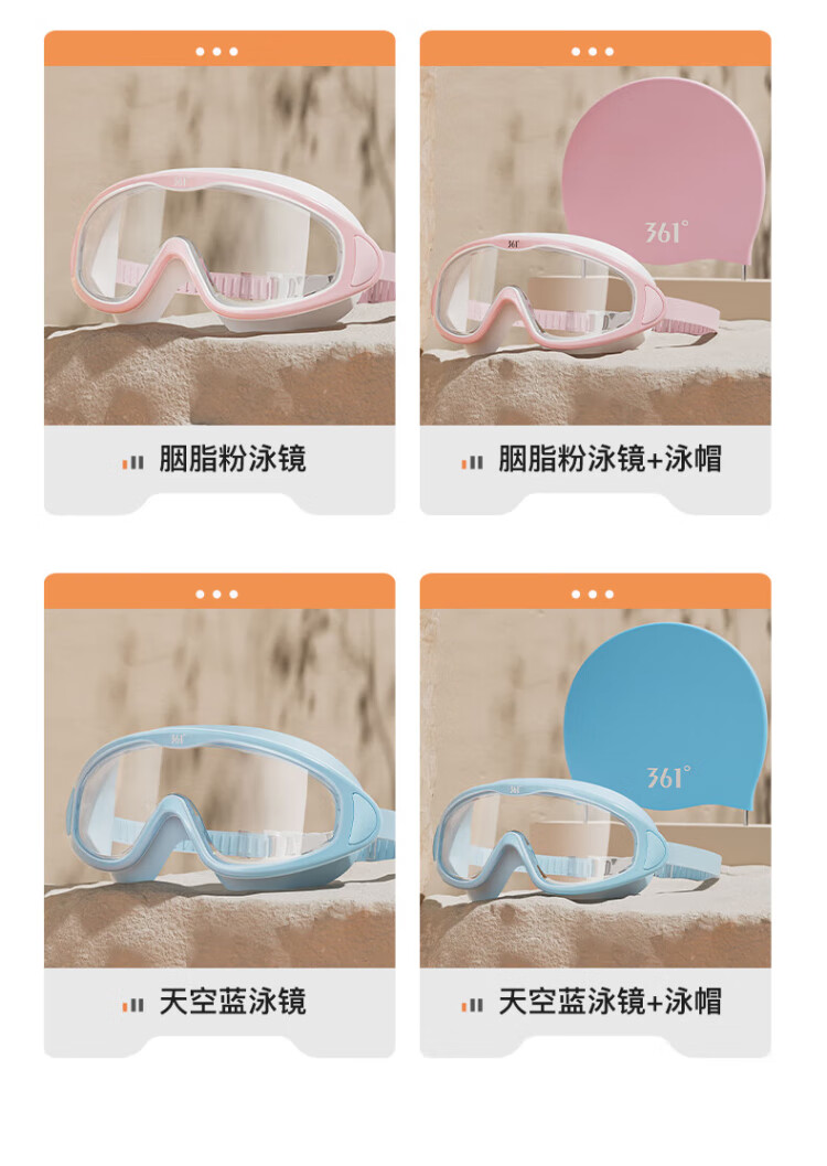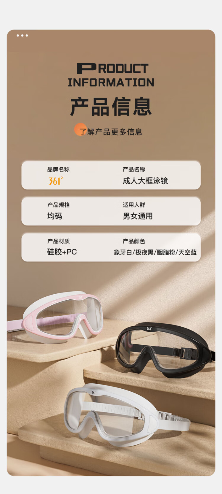 361 adult swimming goggles for men and women high-definition anti-fog and waterproof large frame one-piece professional diving swimming goggles equipment transparent white
