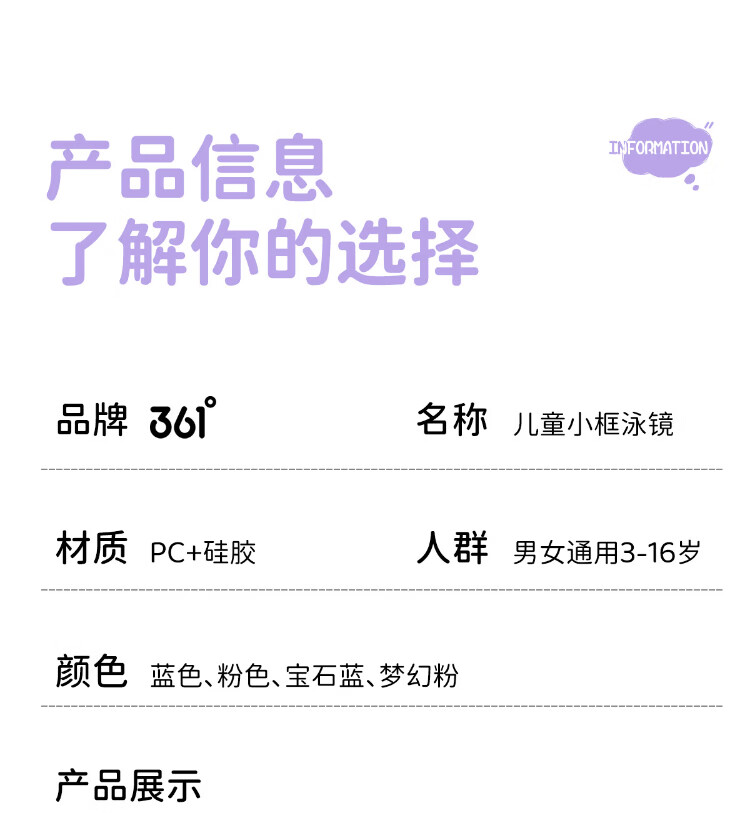 361 Children's Small Frame Swimming Goggles HD Waterproof and Anti-fog Professional Training Racing Men's and Women's Children's Swimming Equipment Diving Goggles
