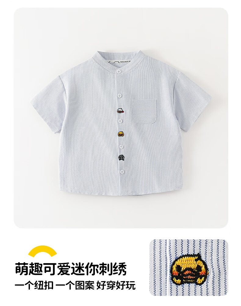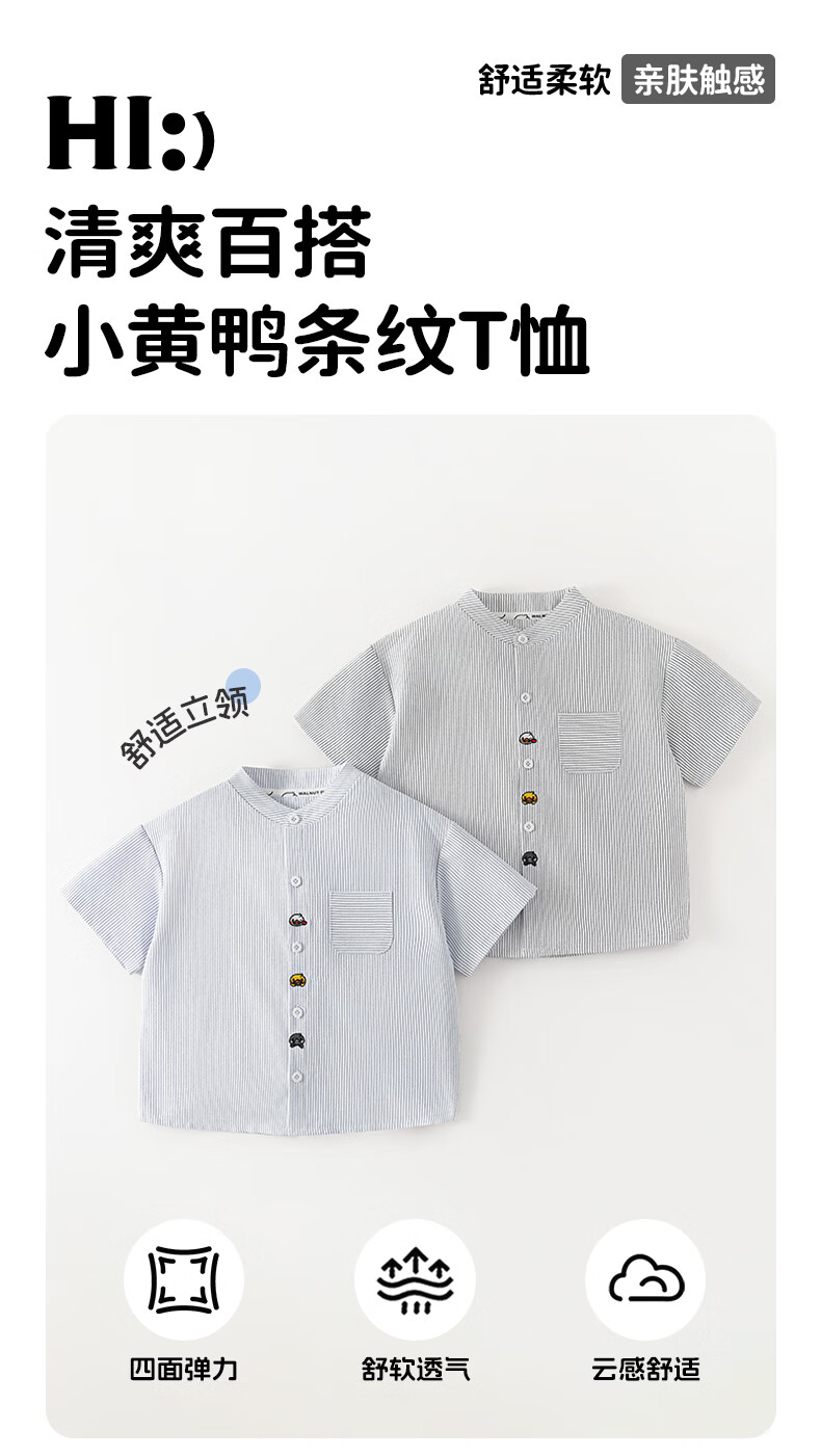 WALNUT DUCK little yellow duck spring long-sleeved shirt spring new boys striped shirt baby children's clothing tops black and white strips 120