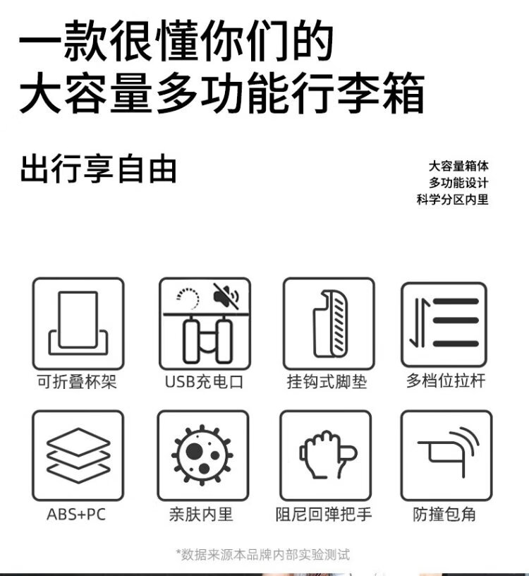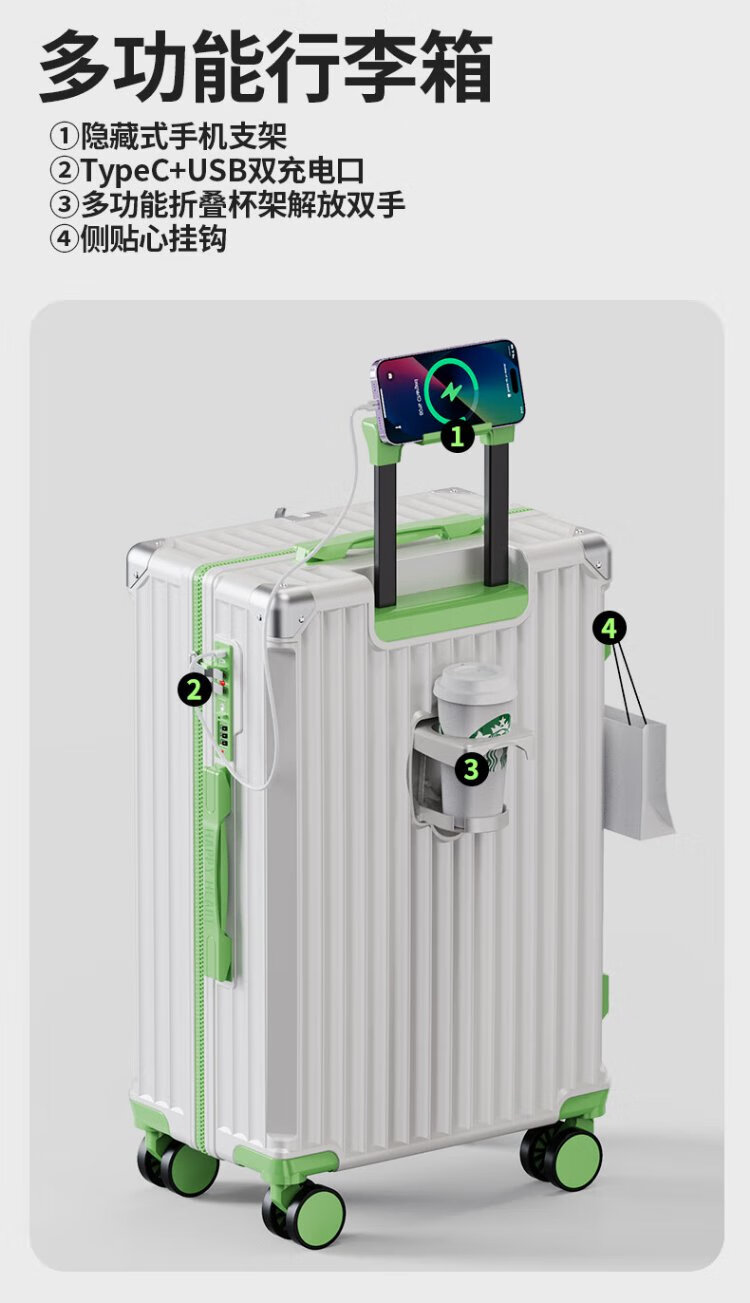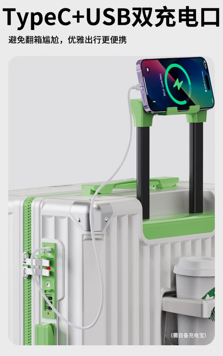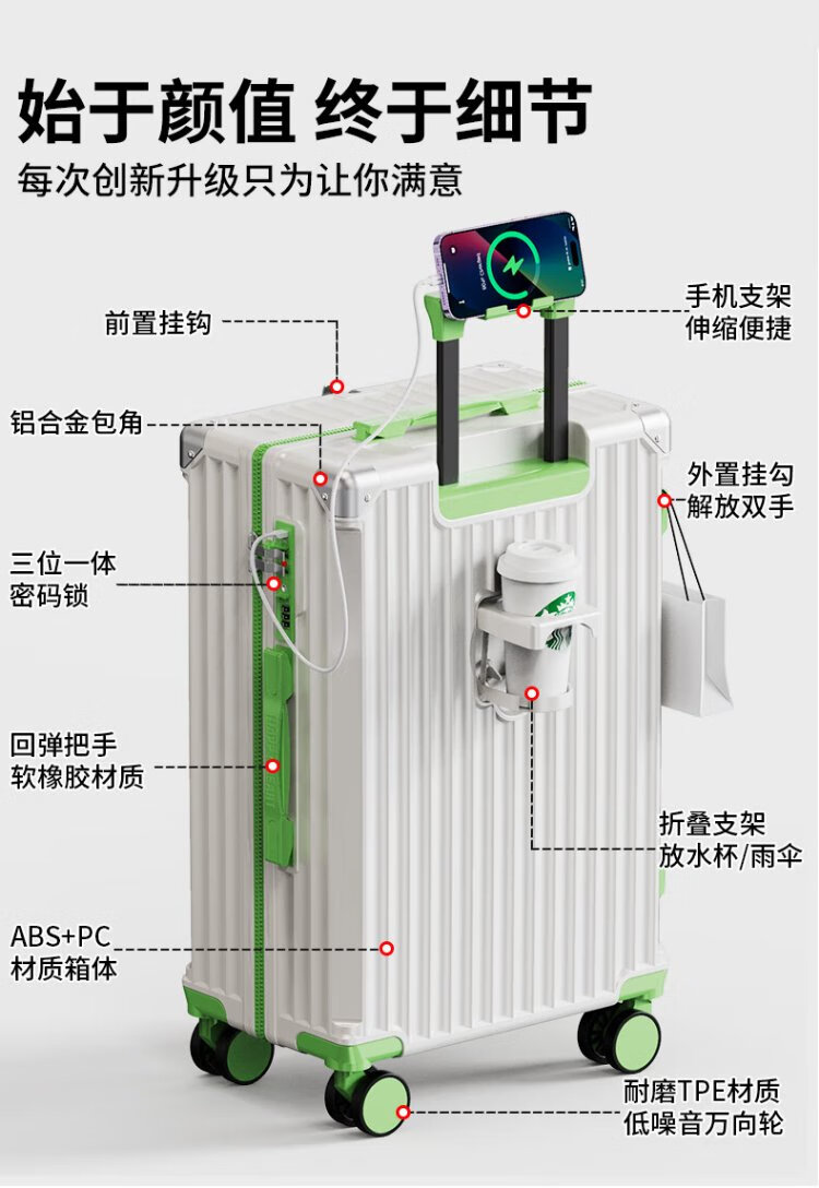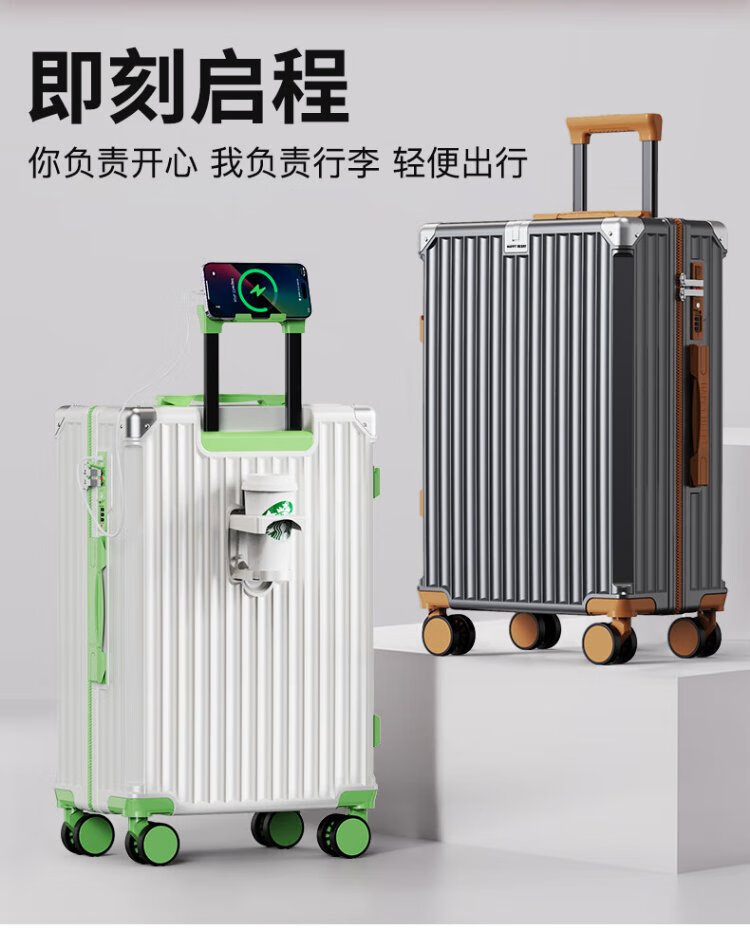 Charles Tao Xin multi-functional high-looking luggage suitcase for women with cup holder trolley case for men with universal wheels, Yao Ye Black 20 inches