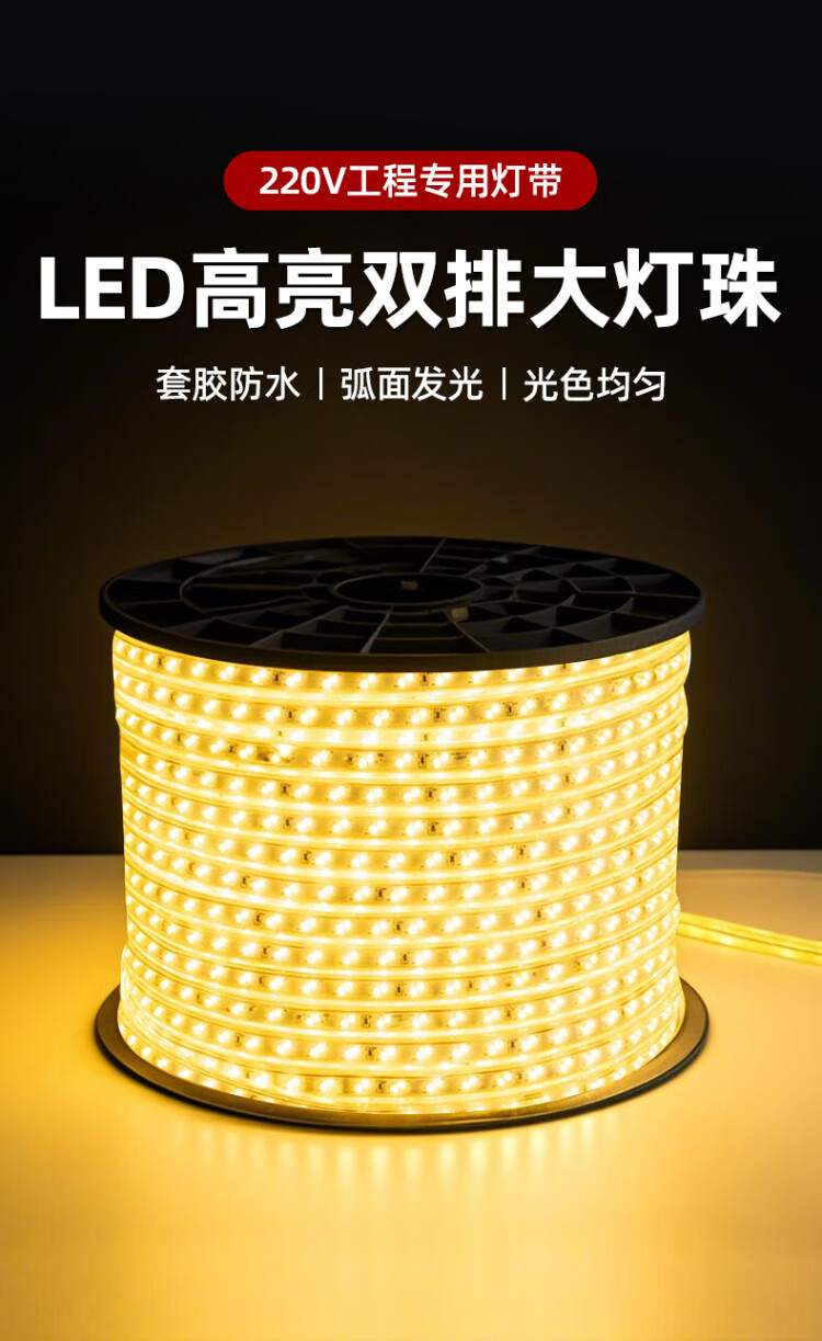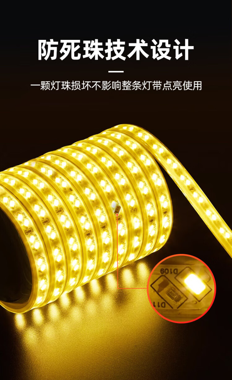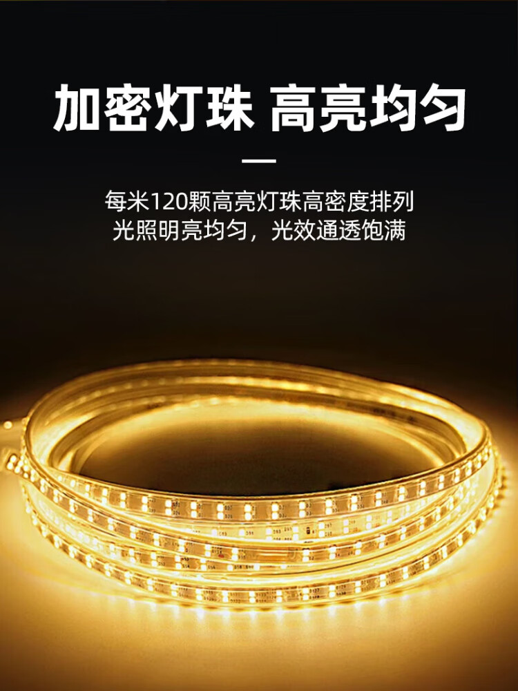 The best 220v high-voltage lamp with outdoor lighting waterproof lamp hotel villa project super bright strip decorative linear lamp 5 meters-220V/10W-120 beads double row-warm light