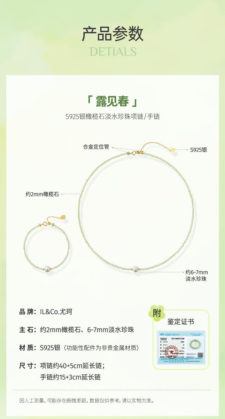IL&CO Youke Lu Jianchun silver pearl necklace women's peridot clavicle chain Chinese Valentine's Day gift for girlfriend