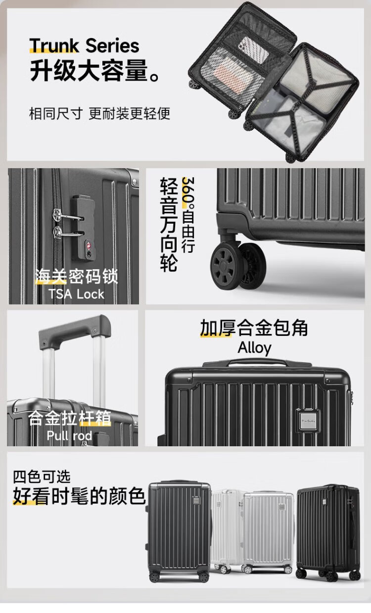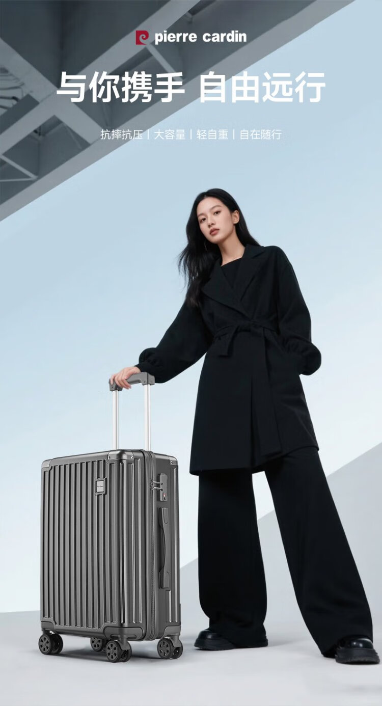 Pierre Cardin suitcase large capacity trolley case boarding suitcase password box small leather suitcase student checked box for men and women