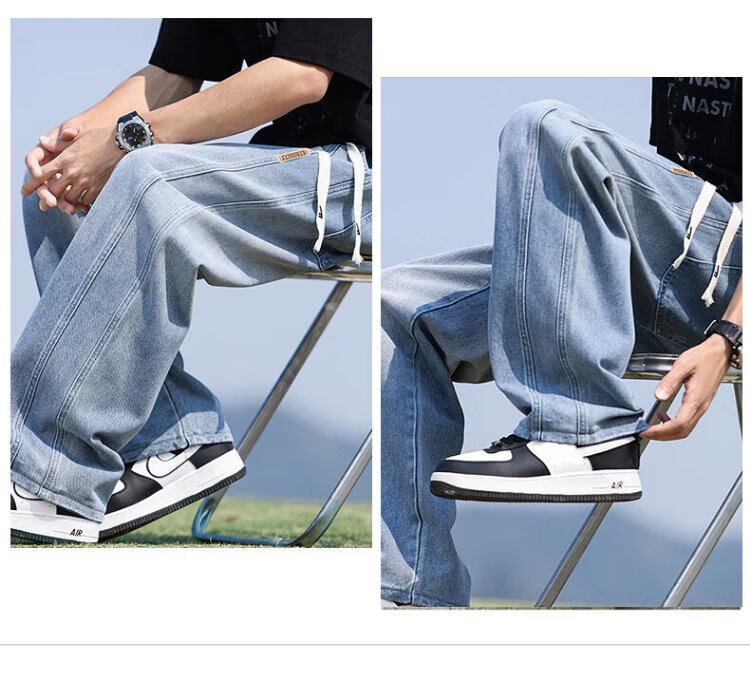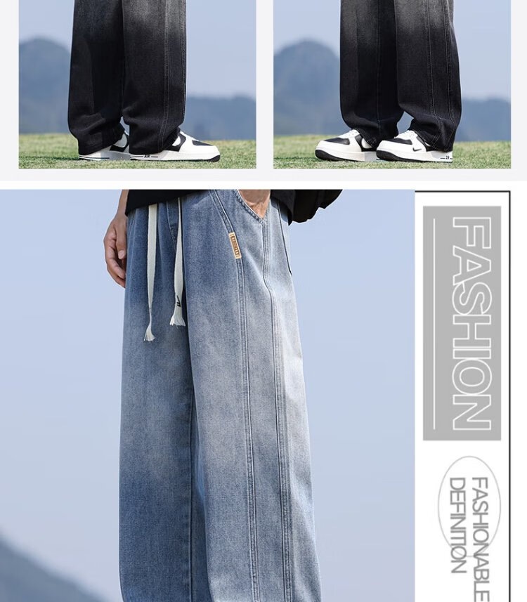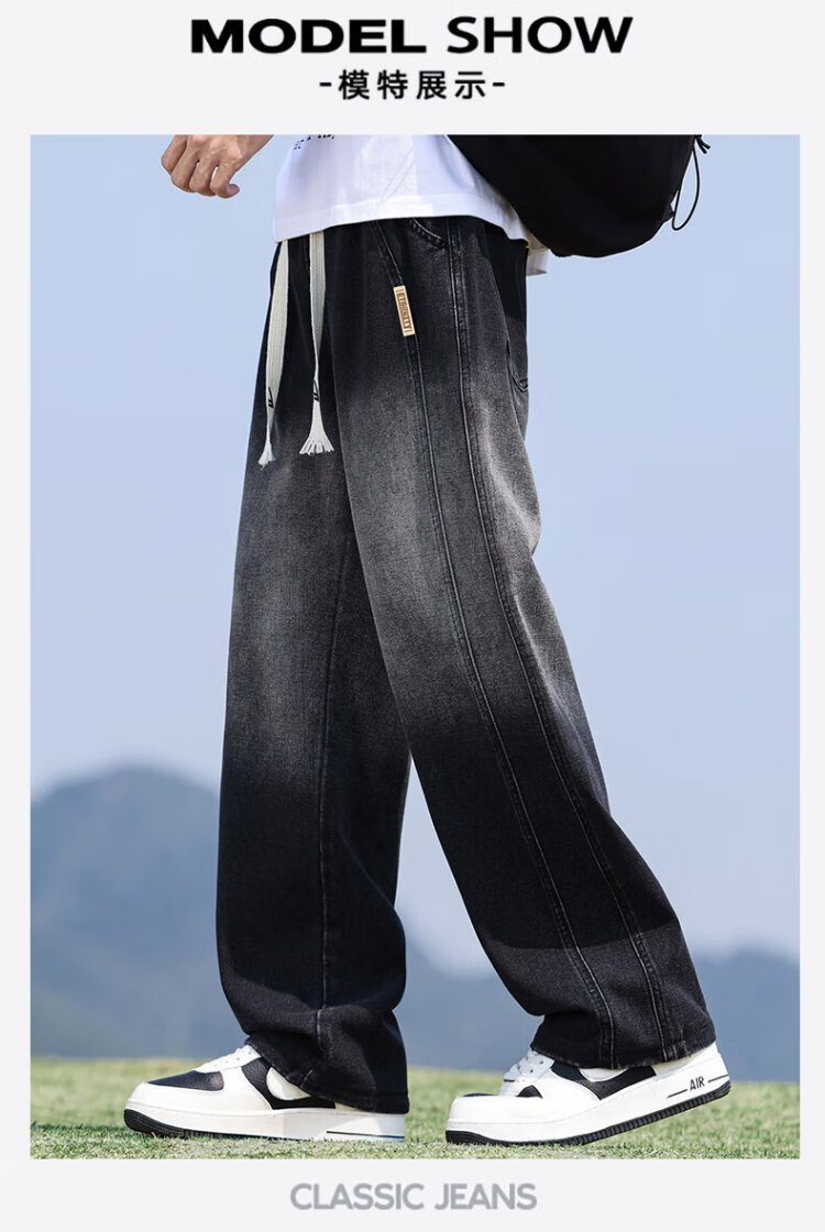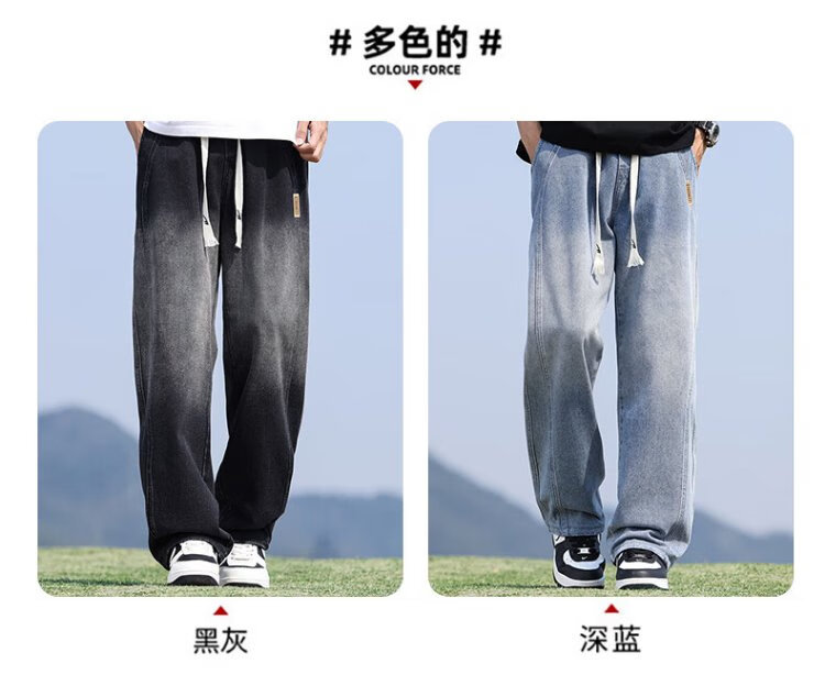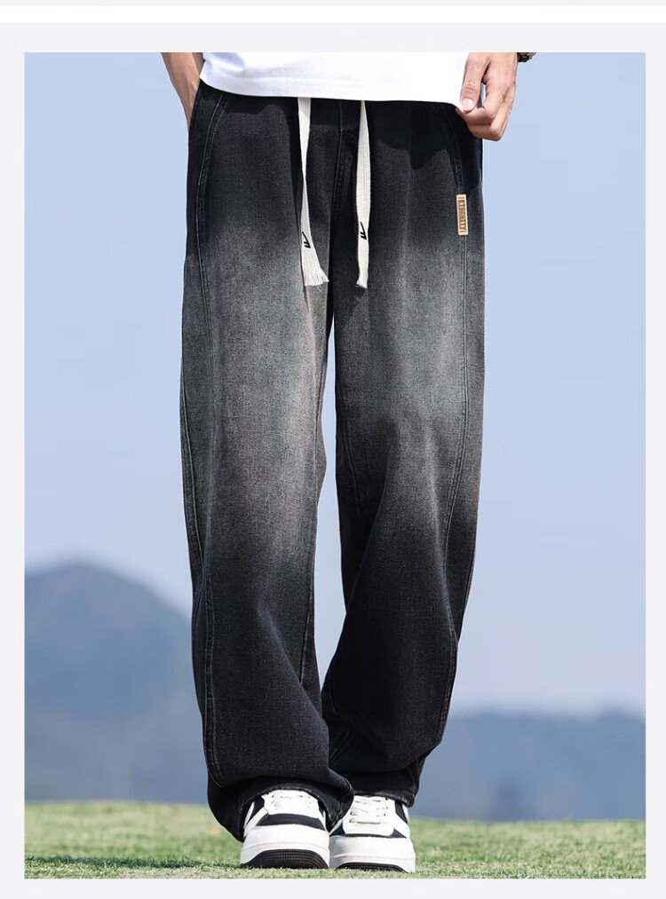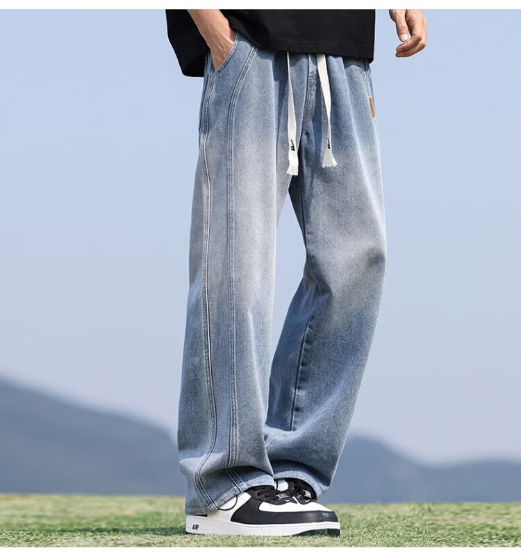 Pull-back jeans men's autumn pants men's American high street jeans men's straight casual pants wide-leg pants men's pants