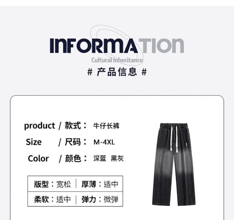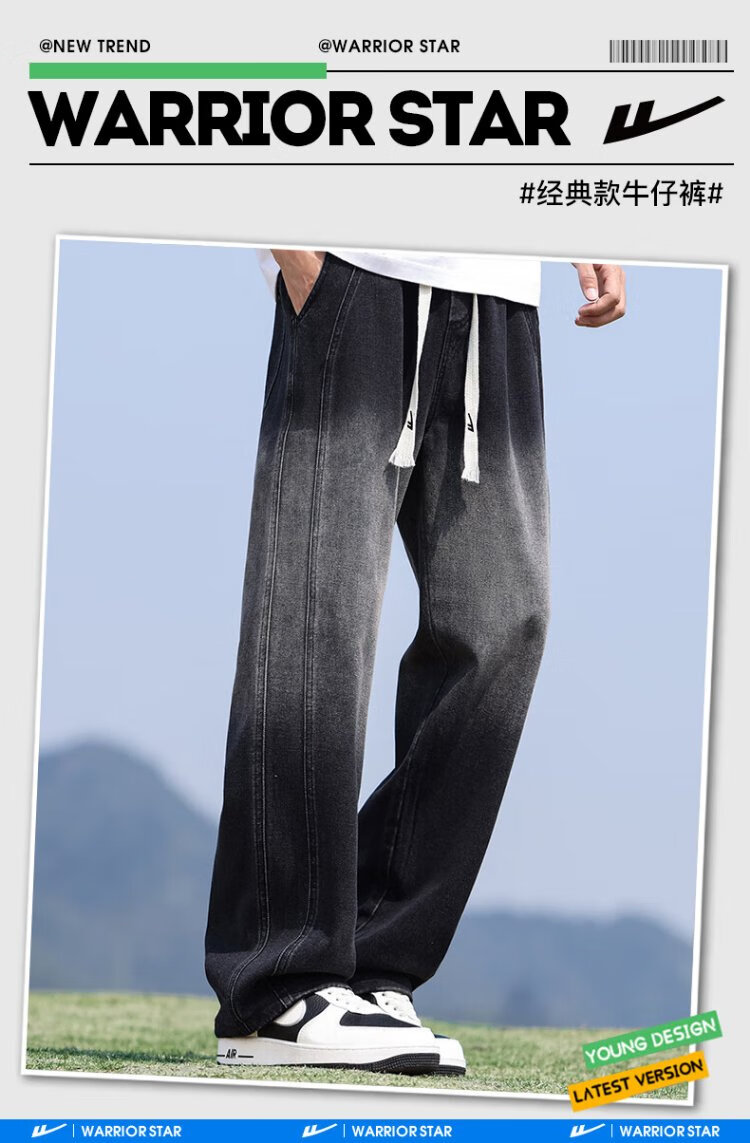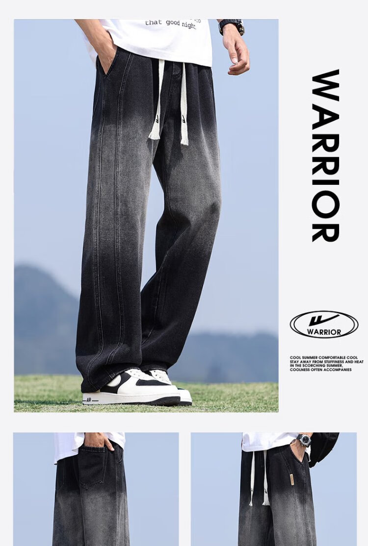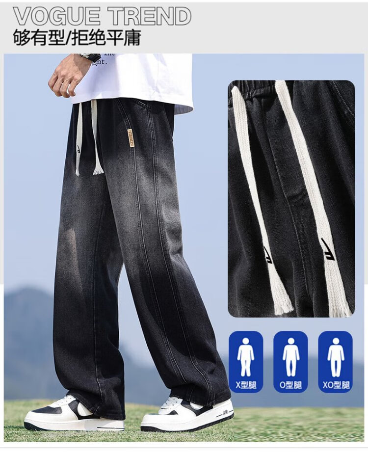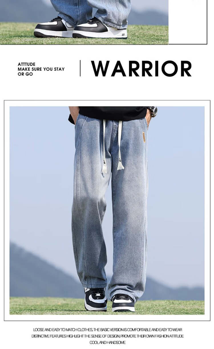 Pull-back jeans men's autumn pants men's American high street jeans men's straight casual pants wide-leg pants men's pants
