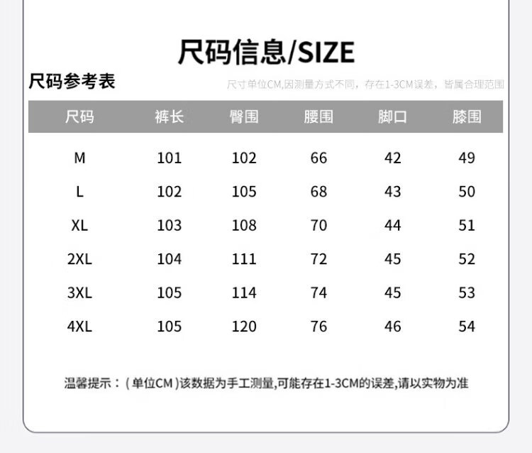 Outseam (cm) 99 cm 101.5 cm 104 cm 106.5 cm 109 cm