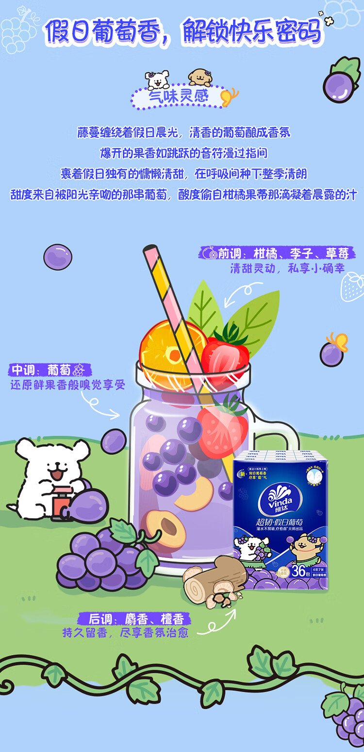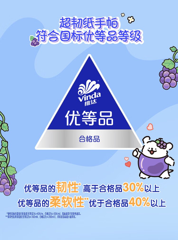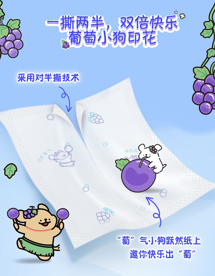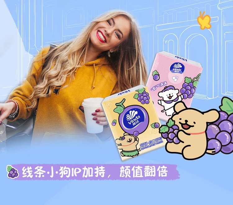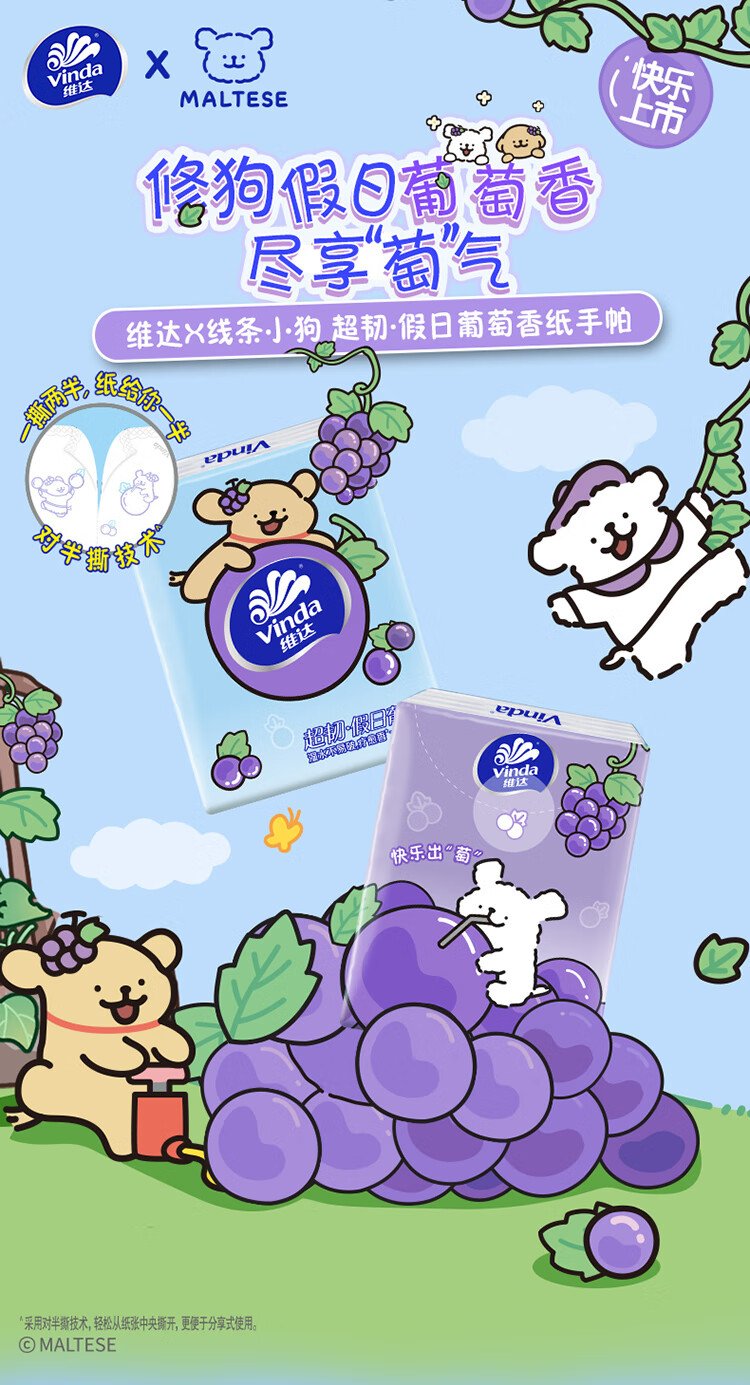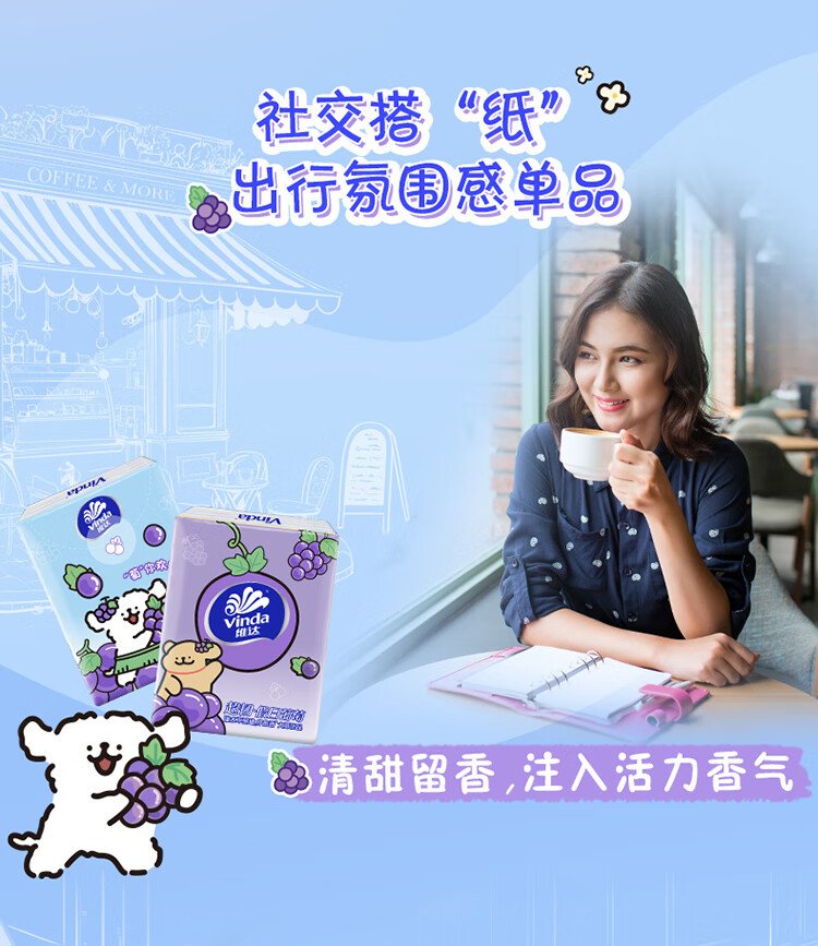 Vinda x line puppy super tough grape scented handkerchief paper 4 layers 7 sheets 36 pack not easy to break when wet thickened paper towels