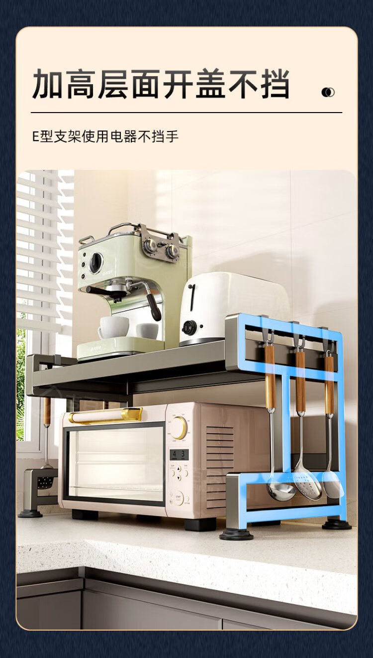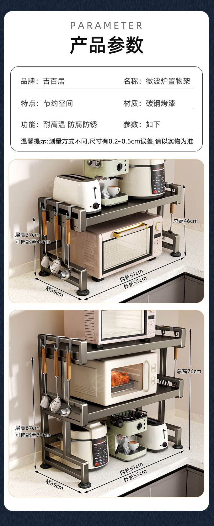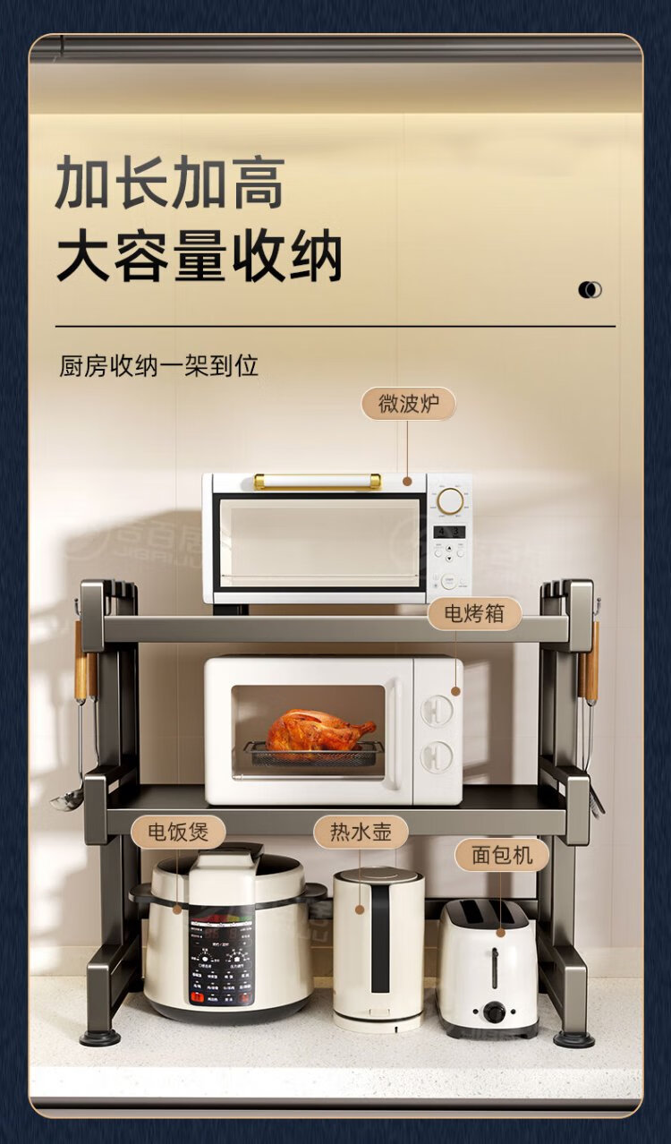 Jibaiju kitchen microwave oven storage rack multi-function table telescopic bracket household multi-layer oven rice cooker storage rack