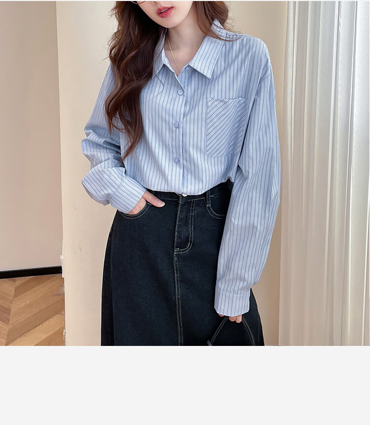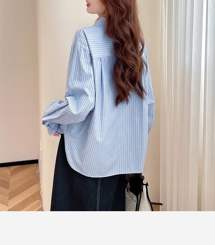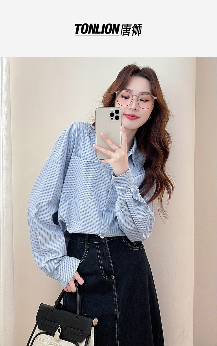 TonLion 2025 Autumn Women's Blue Striped Long Sleeve Shirt