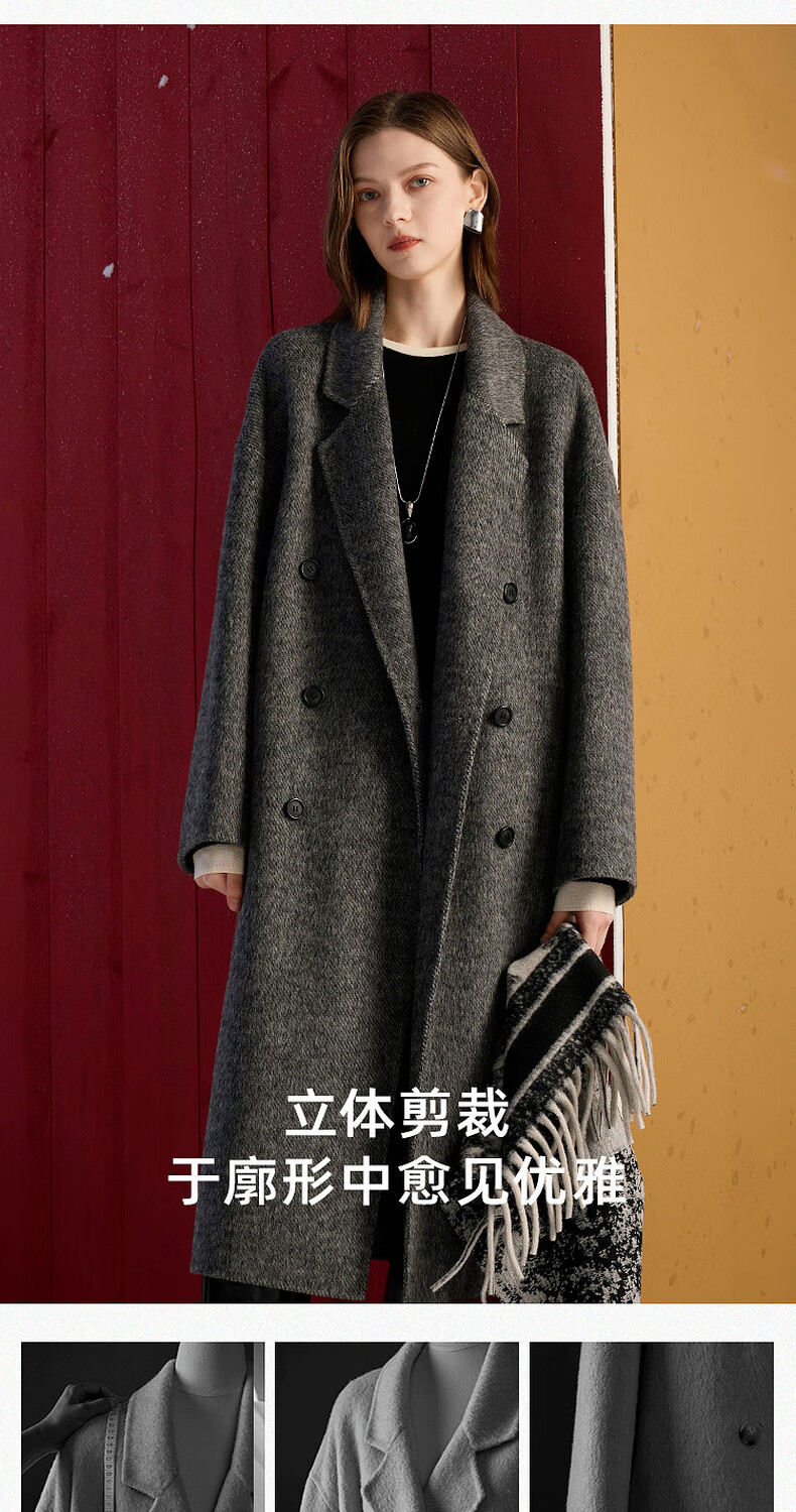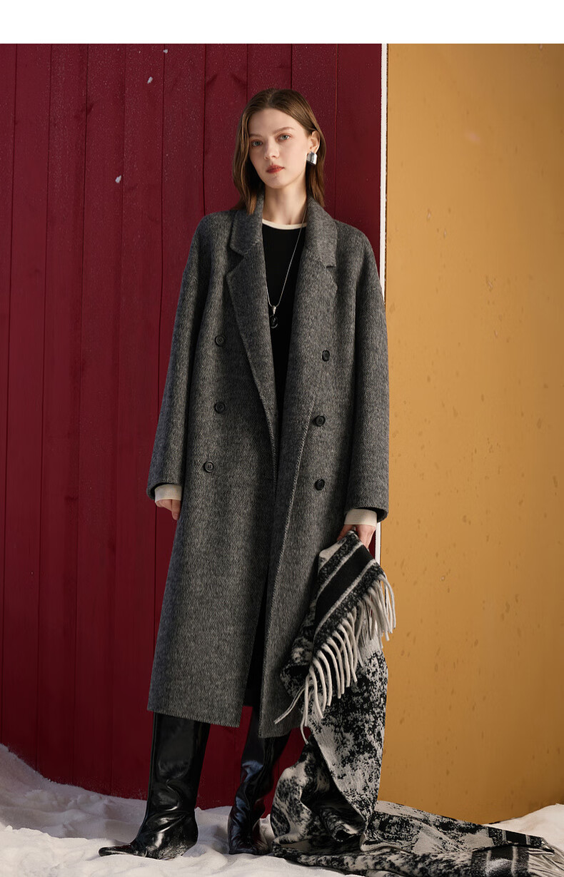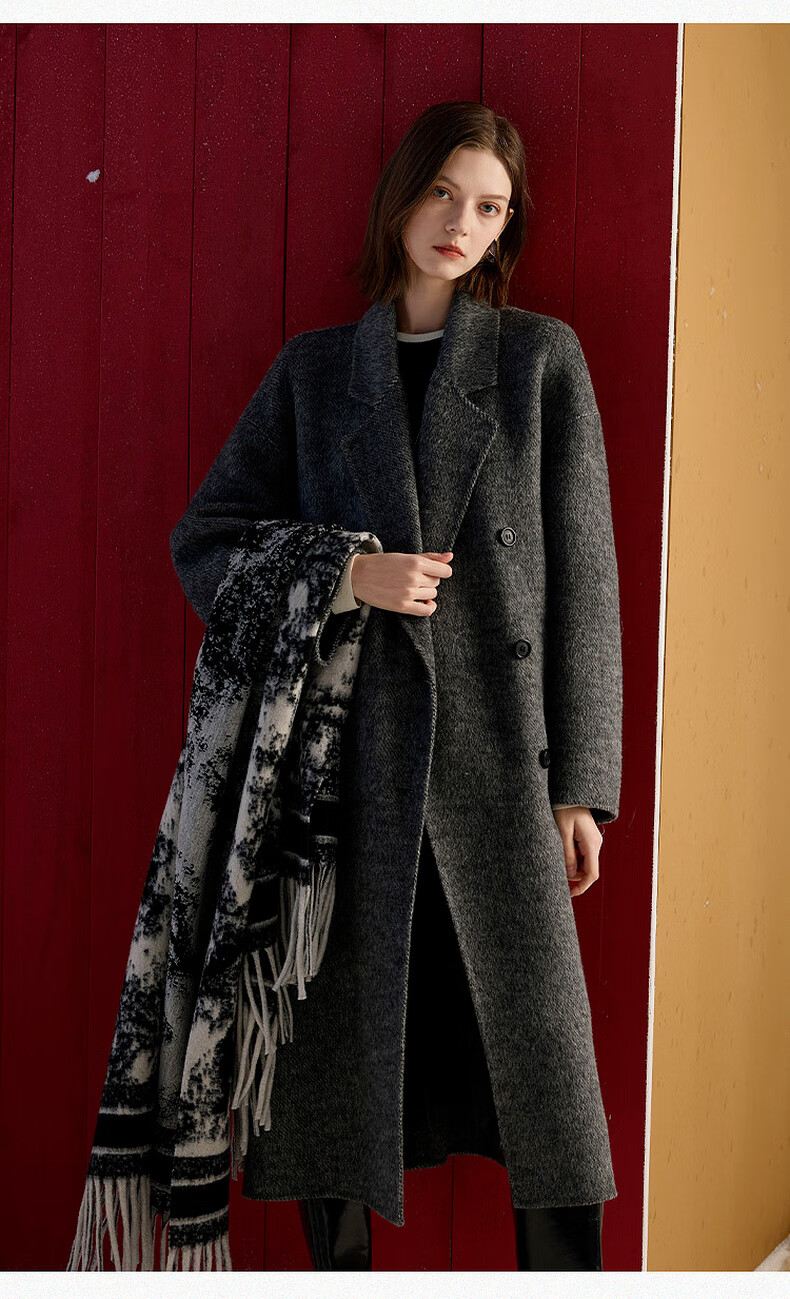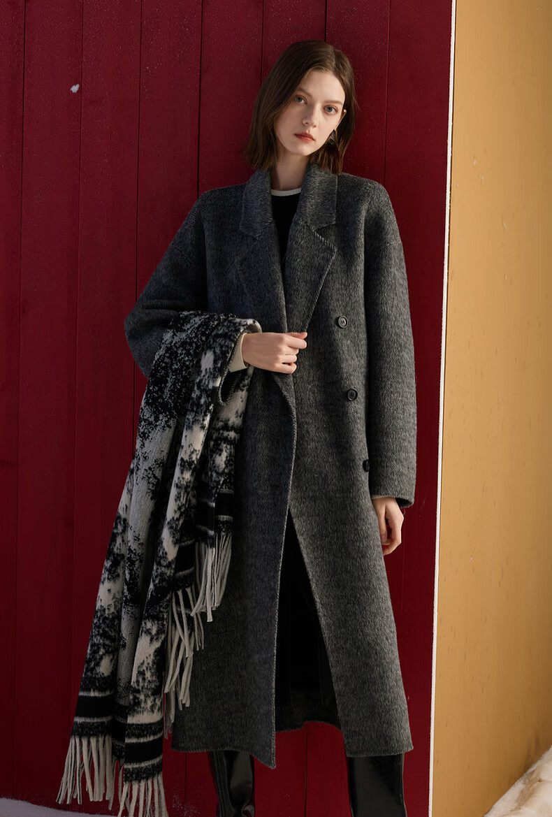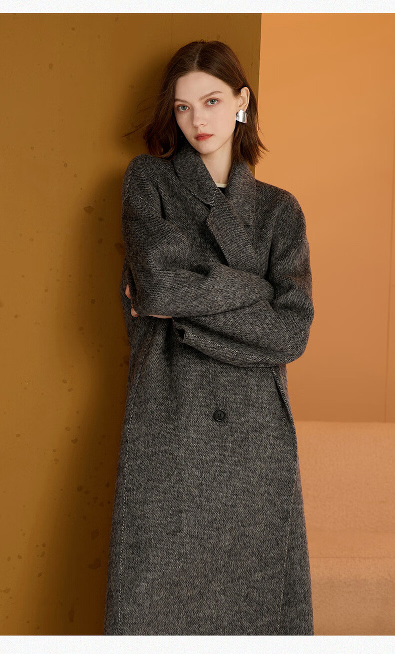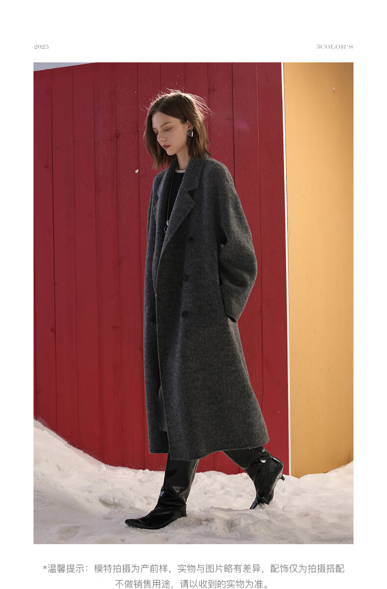 Sancai 2025 winter new double-sided woolen coat woolen coat long S